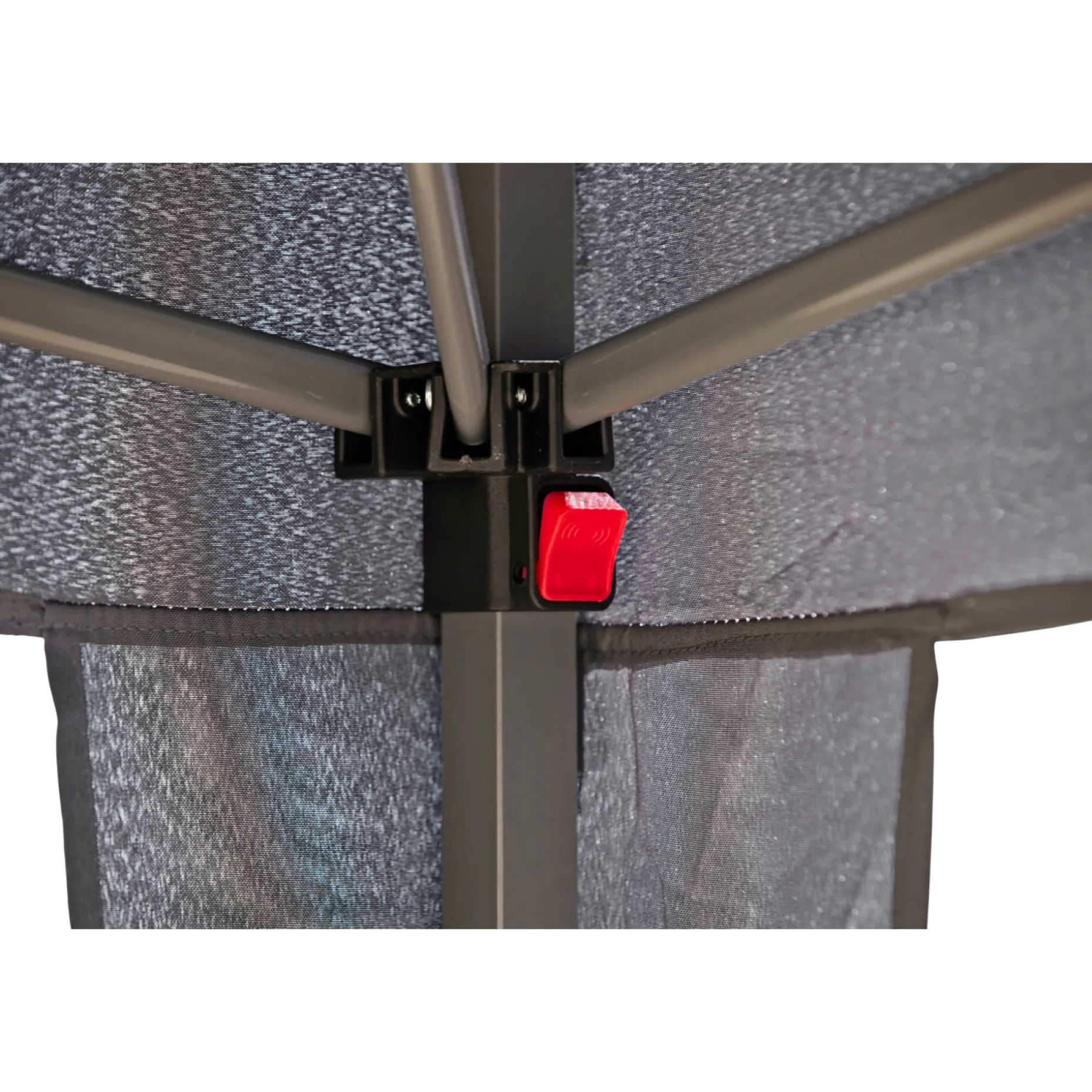 Grå dugtæt pavillion som er nem at slå op. Pavillionen kan bruges både på camping, i haven eller i anledning af en fest.