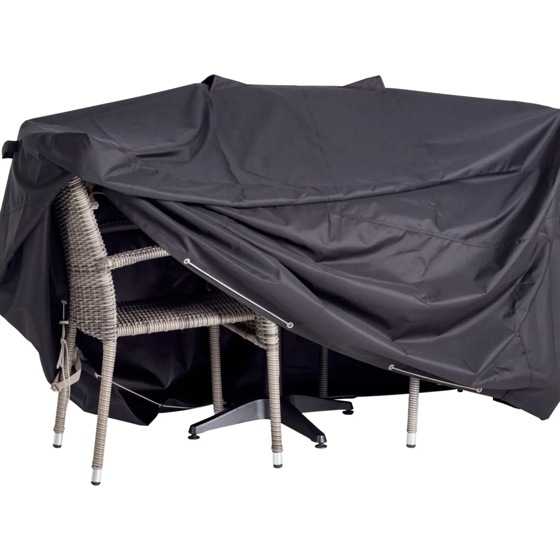 Betrækket er behandlet med polyurethan (PU coated), så vand ikke så let trænger ind til dine havemøbler. Desuden er det åndbart. Outrium havemøbelovertrækket er sort og kommer en i smart pose med håndtag.