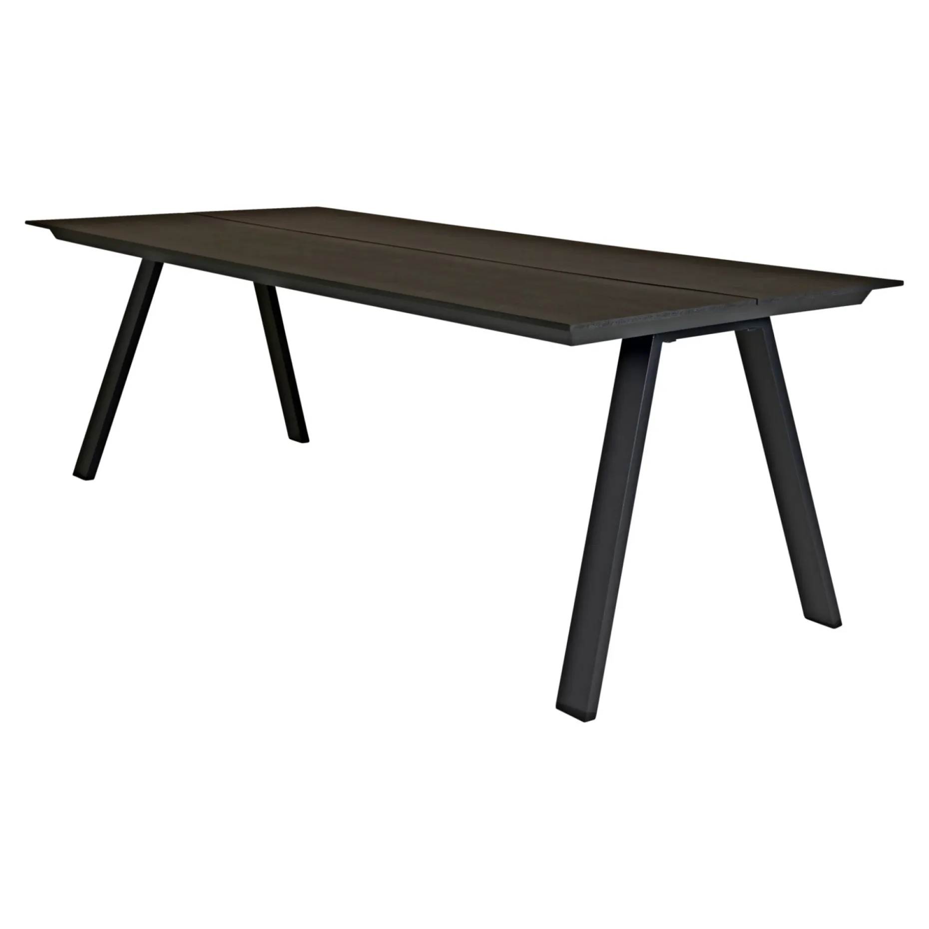 Carros plankebord 6 pers. er et havebord med plankebordkonstruktion og plads til seks personer. Bordet har en sort nonwood bordplade og et alustel. Mål: B100 x L220 x H74 cm. Målene giver god plads til servering og flere kuverter ved fællesspisning på terrassen eller i haven. Den sorte nonwood bordplade skal rengøres straks ved spild af rødvin eller stærkt farvede produkter for at undgå misfarvninger. Vi anbefaler brug af bordskåner og skærebræt for at beskytte overfladen. Bordpladen tåler ikke direkte varme fra f.eks. en varm gryde. Plankebordets længde på 220 cm giver mulighed for at stille fade og serveringsfade langs bordets midte uden at skifte bordplacering. Til daglig brug anbefales beskyttelse mod varme og farvestoffer for at bevare bordpladens udseende. Egner sig til brug i have og på terrasse ved udendørs spisning.