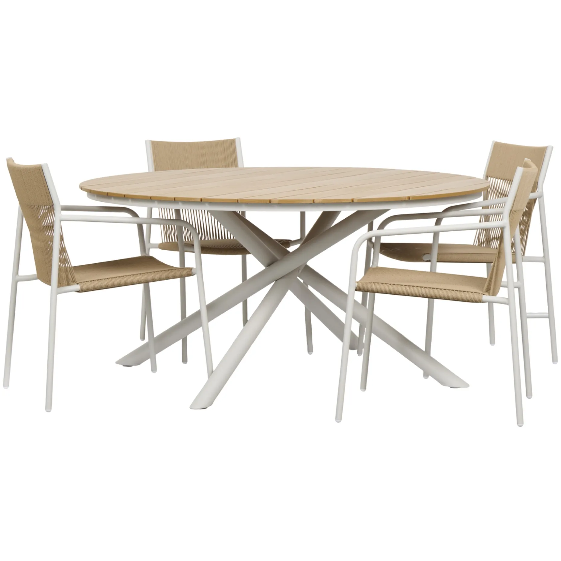 Catania bord Ø152 cm med bordplade i nonwood og gråbeige alustel.