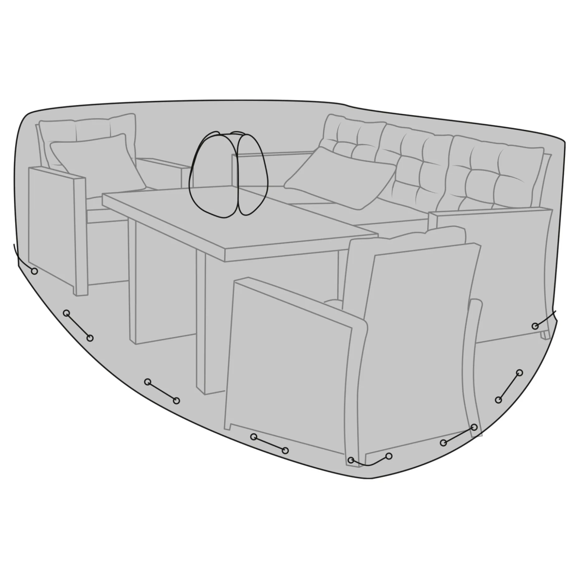 Betrækket er behandlet med polyurethan (PU coated), så vand ikke så let trænger ind til dine havemøbler. Desuden er det åndbart. Outrium havemøbelovertrækket er sort og kommer i en praktisk opbevaringstaske med håndtag.