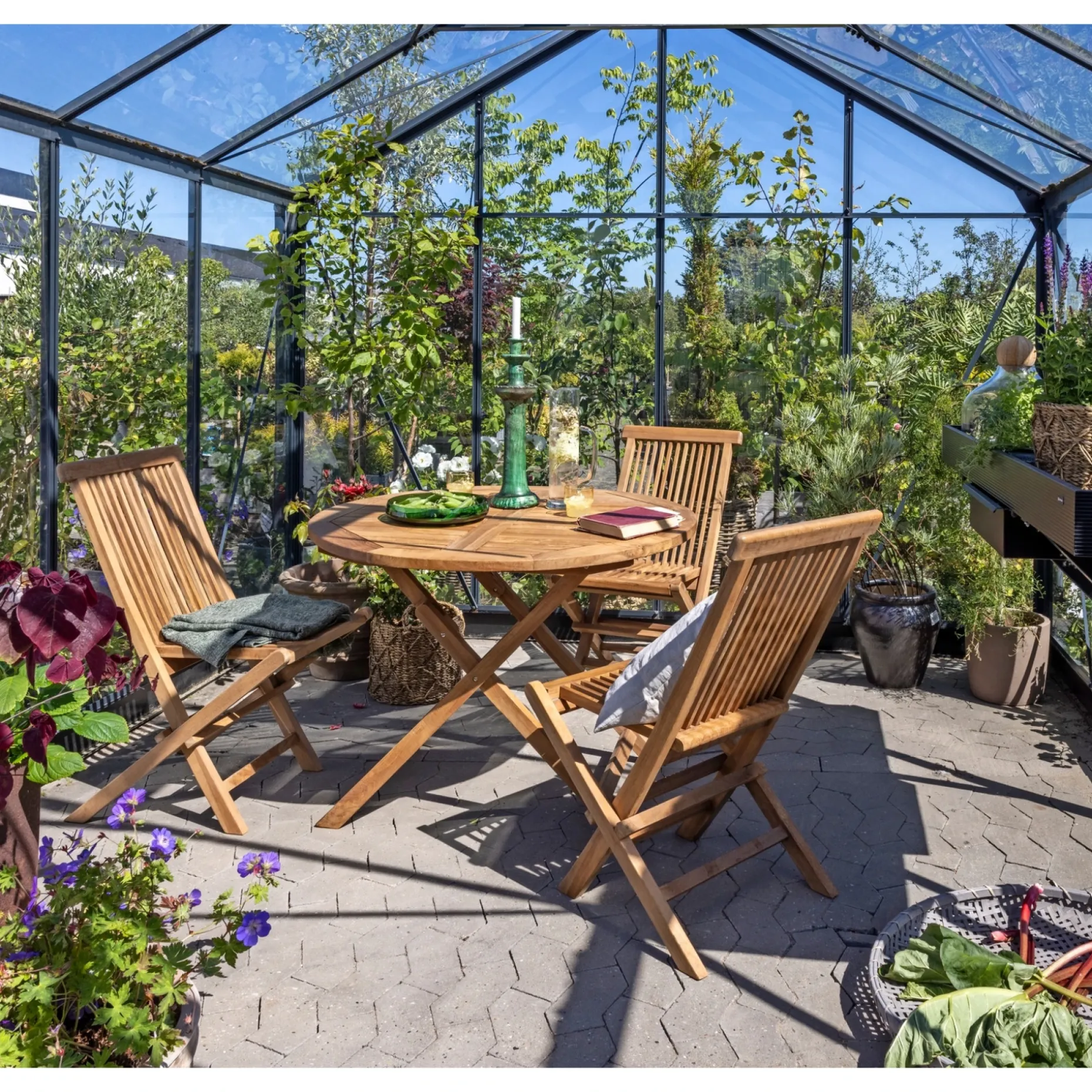De fire tilhørende Syros klapstole er også i teaktræ.