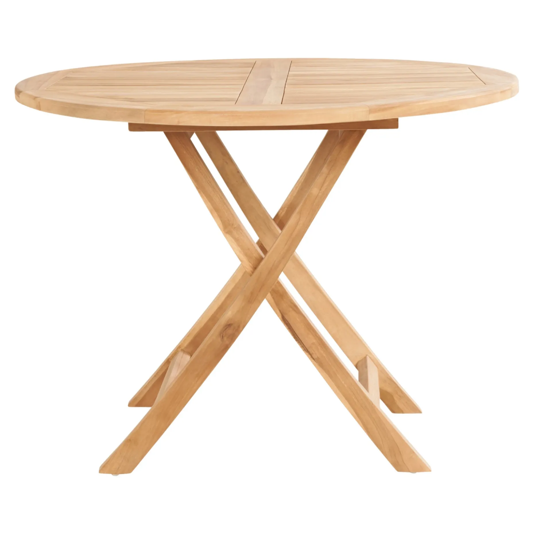 Klapbordet er fremstillet af flot teaktræ og har en diameter på 100 cm