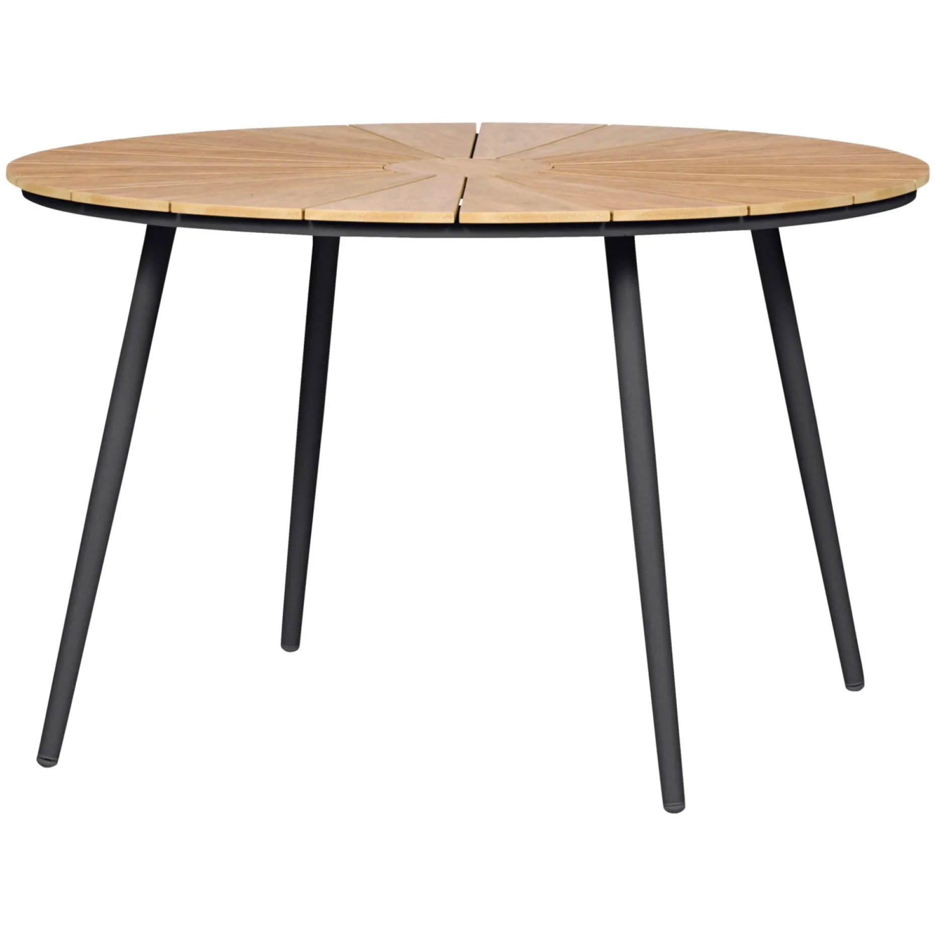Havebord Ø120 cm med bordplade i teakfarvet nonwood og antracitfarvet, pulverlakeret alustel.
