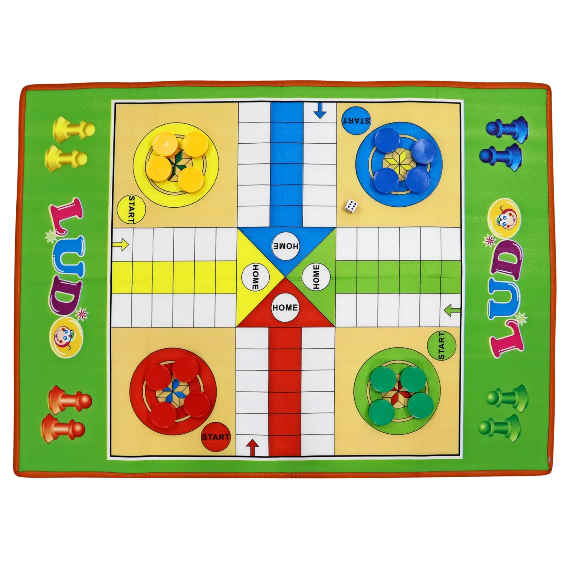 Ludo er et populært spil hos både børn og voksne, og dette store ludospil er lige til at tage med i haven, på camping eller i sommerhuset. Der medfølger brikker og terning, så I hurtigt kan komme i gang med at spille om, hvem der skal tage opvasken!