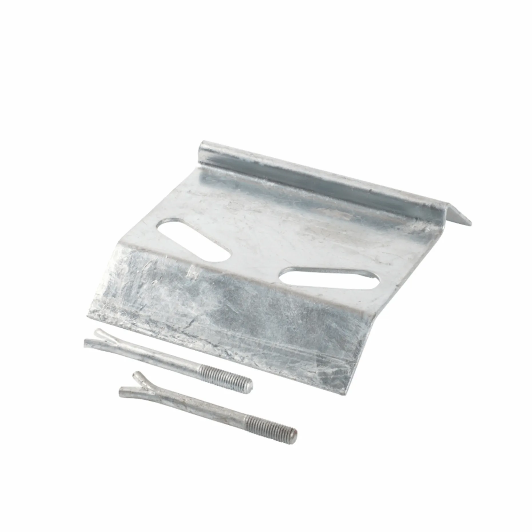 Tilbehør til anslagspladen omfatter skudrigel varenr. 2512-1, som kan kombineres med pladen for at skabe en samlet lågeløsning. Overfladen er varmgalvaniseret.