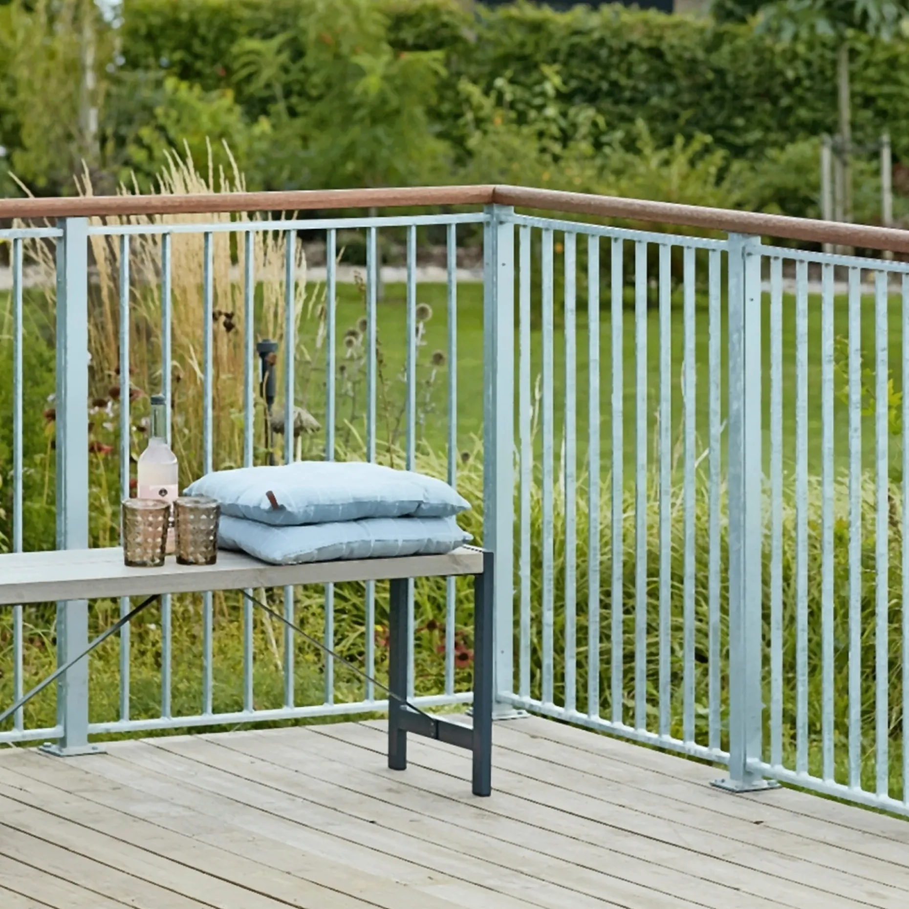 Systemet er varmgalv. og leveres i mål 3x90x98CM, hvilket svarer til totalmål B90xH98 cm. Til montering på stålstolper kan skruerne 17520-1 anvendes. Den robuste U-profil og de lodrette stave giver en stabil konstruktion, der egner sig til rækværk på terrassen. Stolper og håndliste skal tilkøbes separat. Mahogni håndliste er bestillingsvare. Kontakt Din lokale XL-BYG forretning for bestilling og vejledning.