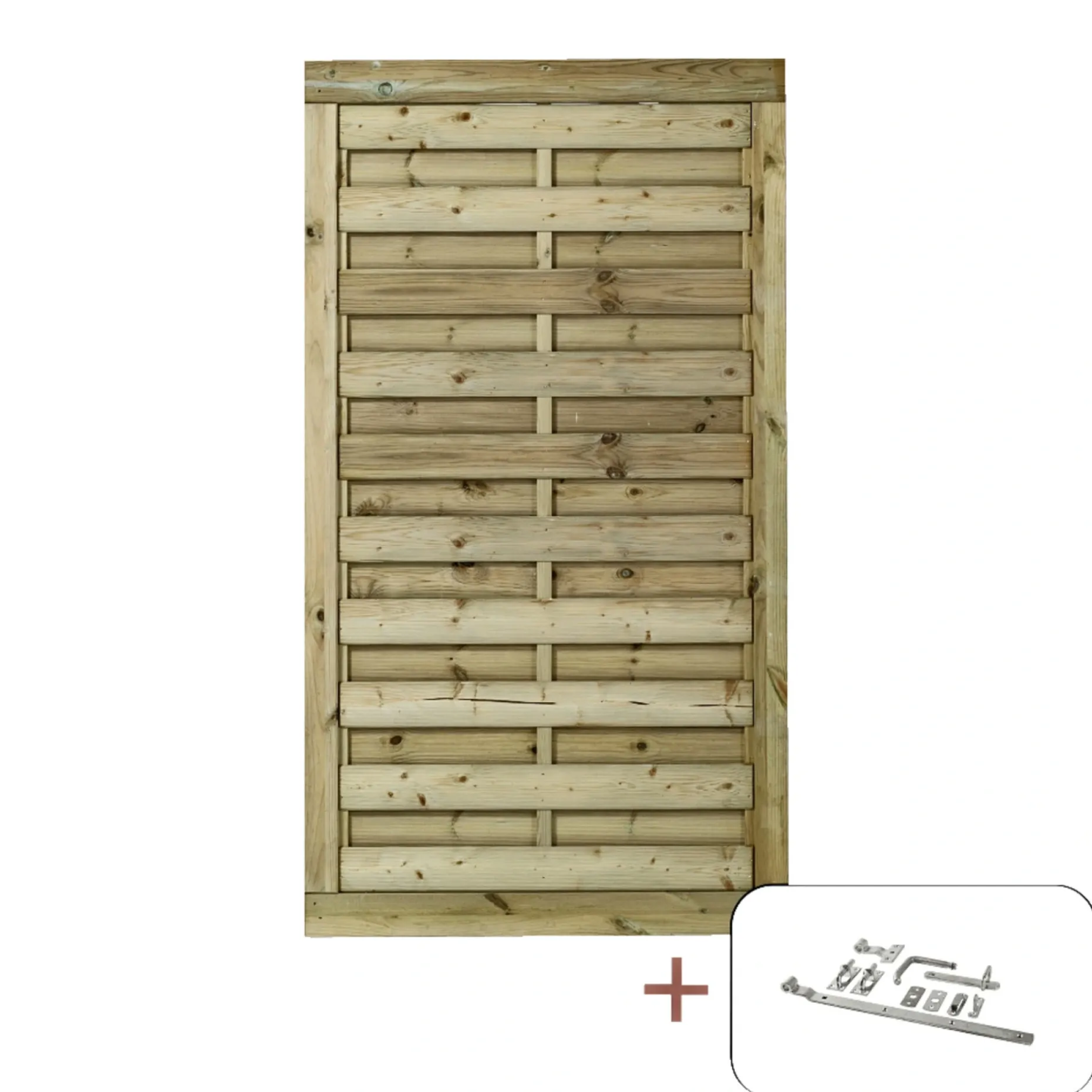 PLUS BERGEN enkeltlåge leveres inkl. beslag og er trykimprægneret natur i målene 100 x 180 cm.