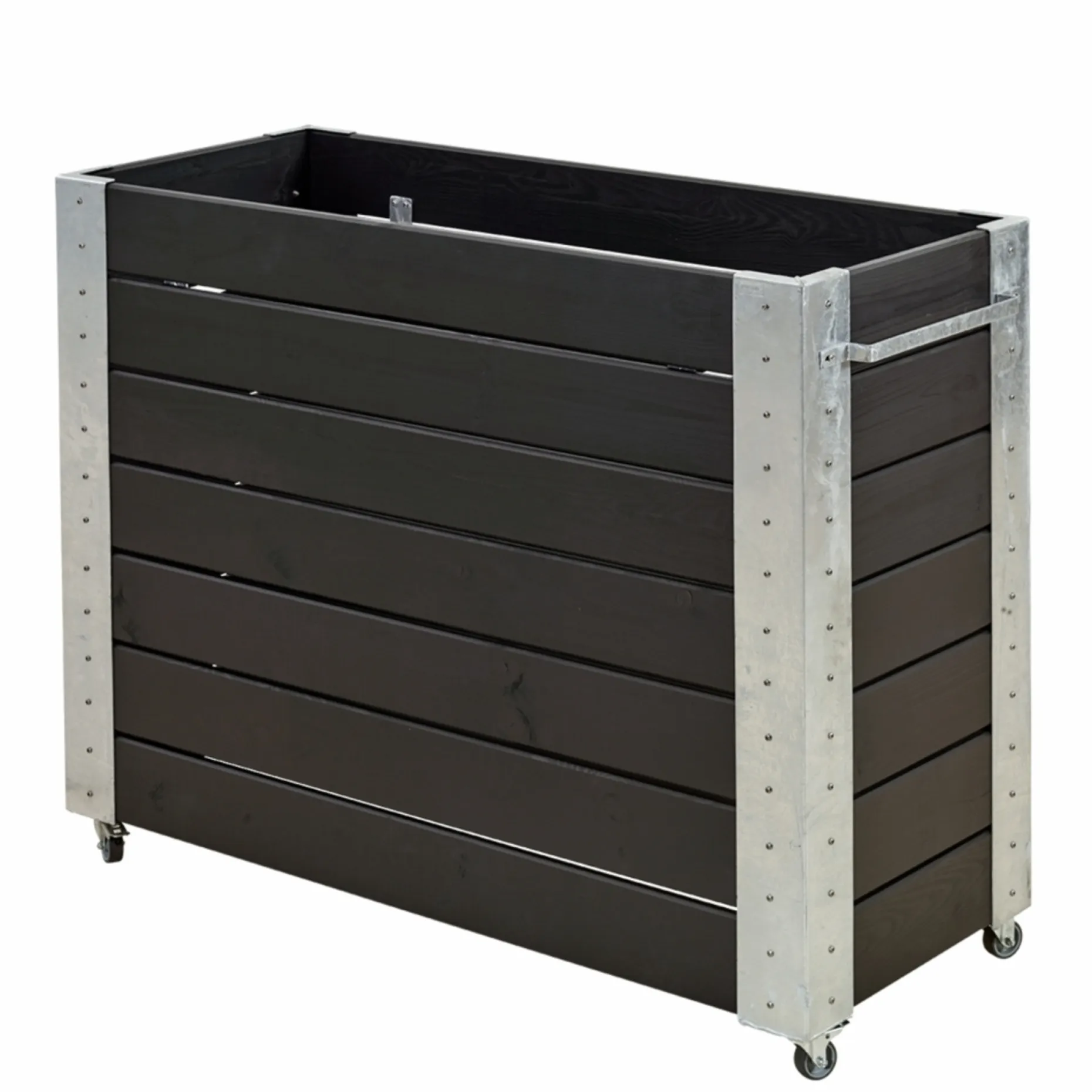 Hjulene med bremselås gør det muligt at fastlåse kassen ved placering, så den står sikkert under plantning.