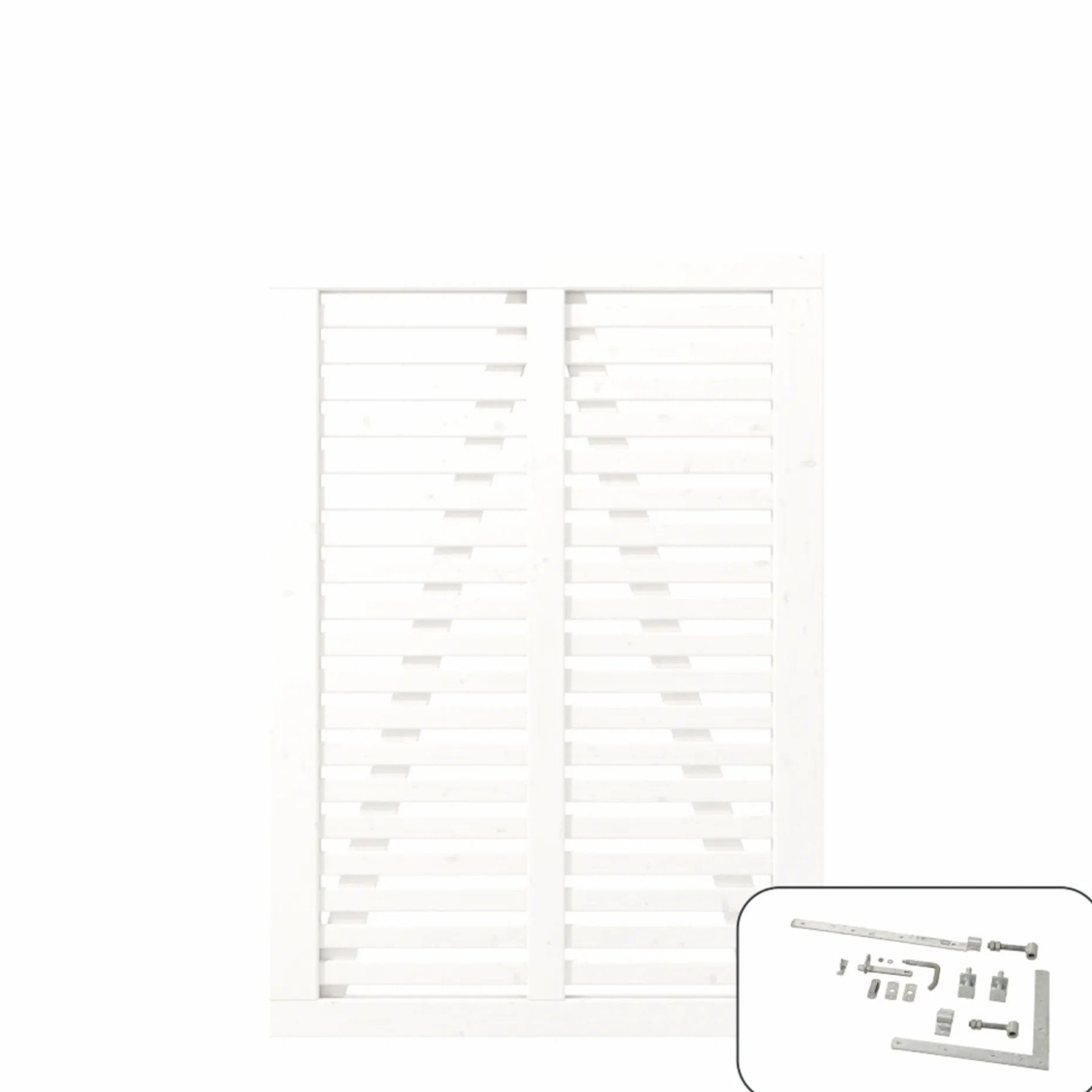 Lad harmonien brede sig i dit uderum med denne smukke havelåge i træ, inkl. beslag.Lågen er fungicidbehandlet og grundmalet 2 gange i hvid, hvilket giver en beskyttet og ensartet overflade. De smalle lister virker kamuflerende, så indkig begrænses uden at lukke helt.Samspillet mellem lodrette og vandrette lister skaber en flot persienneeffekt, der leder tankerne hen på japanske foldevægge. Persienneeffekten skaber et levende spil mellem lys og skygge, som ændrer udtrykket gennem dagen.Den fungicidbehandlede overflade beskytter træet mod svampeangreb og bidrager til en længerevarende finish. Grundmalet to gange i hvid giver en ensartet farve og gør det lettere at bevare et rent udtryk i haven. Lågen er velegnet som havelåge i uderum og ved haveindgange, hvor privathed og æstetik ønskes samtidig.Målene 100 x 140 cm og 3,4 x 100 x 140 cm passer til indgange i uderum, hvor et stilrent og let gennemsigtigt udtryk ønskes.