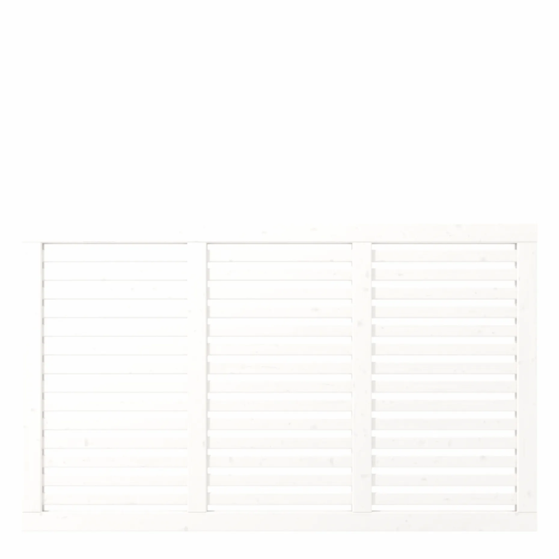 PLUS Harmoni Hegn i træ måler 180 x 107 cm og er fungicidbehandlet og grundmalet 2 gange i hvid (RAL 9010). Hegnet er designet som et listehegn med smalle lister, der virker kamuflerende og giver en tidløs, rolig overflade i haven eller på terrassen.