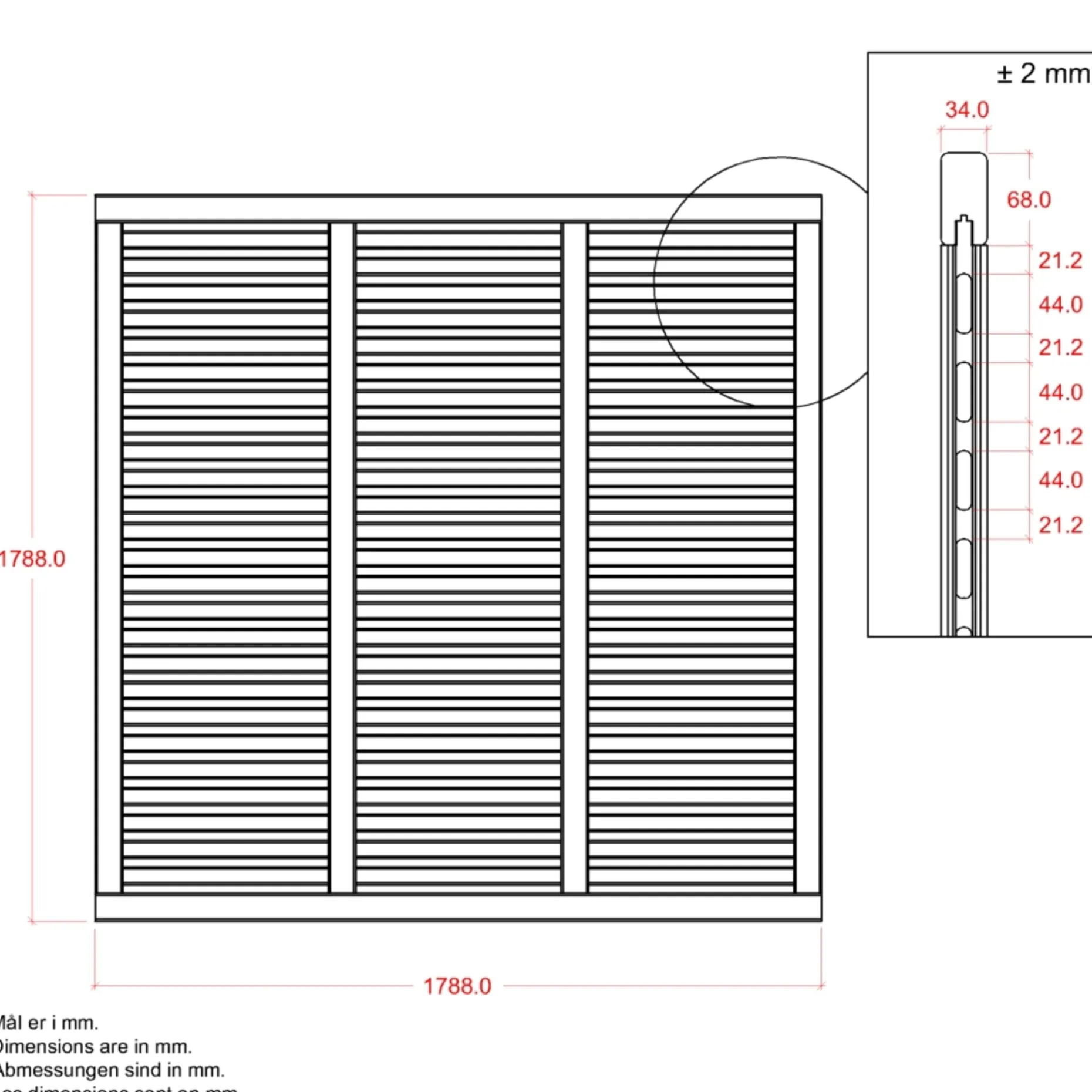 - Mål: 3,4 x 180 x 180 cm (panelmål 180 x 180 cm)