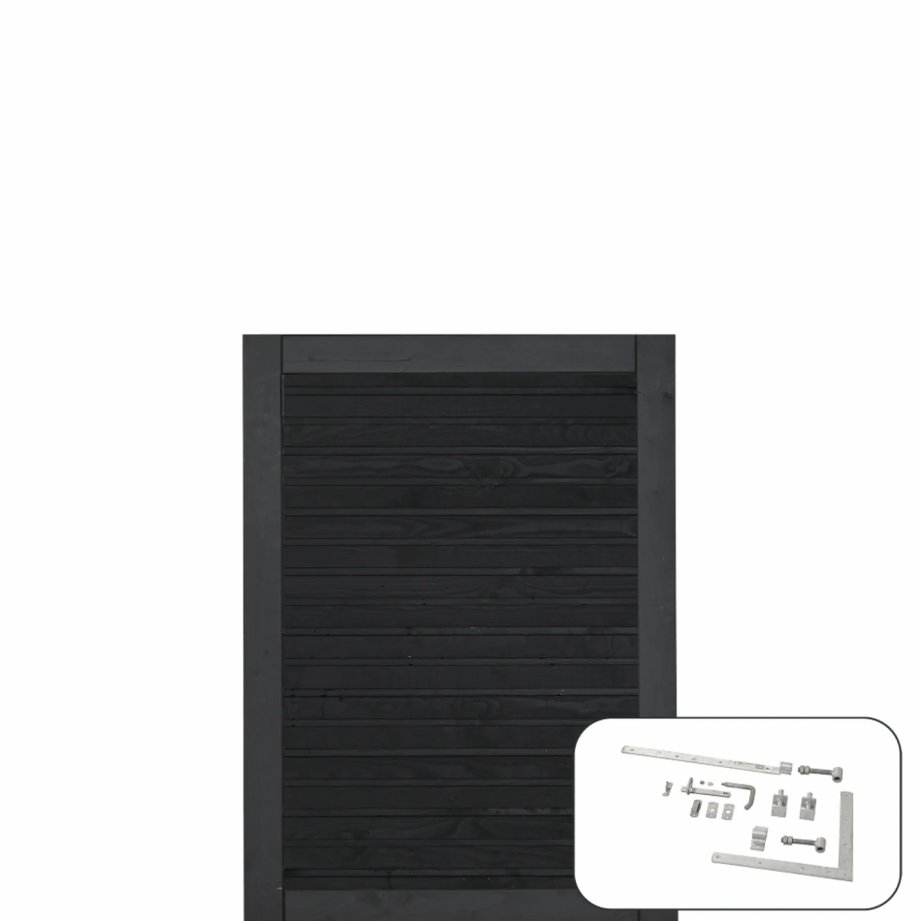 PLUS Plank enkeltlåge er en massiv låge i størrelse 100×125 cm, trykimprægneret og grundmalet sort.