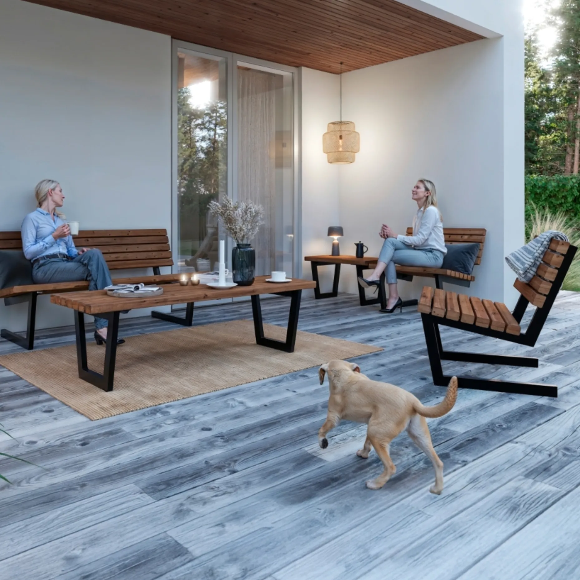 Det elegante design med træplanker passer perfekt ind i tidens trend og har et naturligt look, som skaber en hyggelig atmosfære.