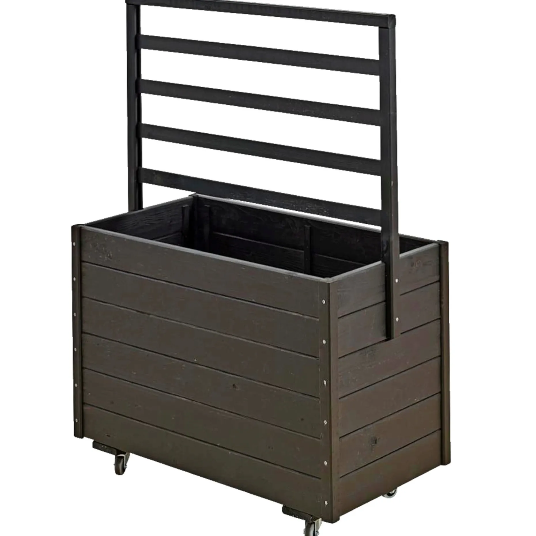 PLUS Basic plantek.m/espalier er en plantekasse med espalier og hjul i grundmalet sort, mål 124 x 48 x 88 cm (48x124x88 cm). Sider leveres færdigsamlet, bundbrædder er umalet.