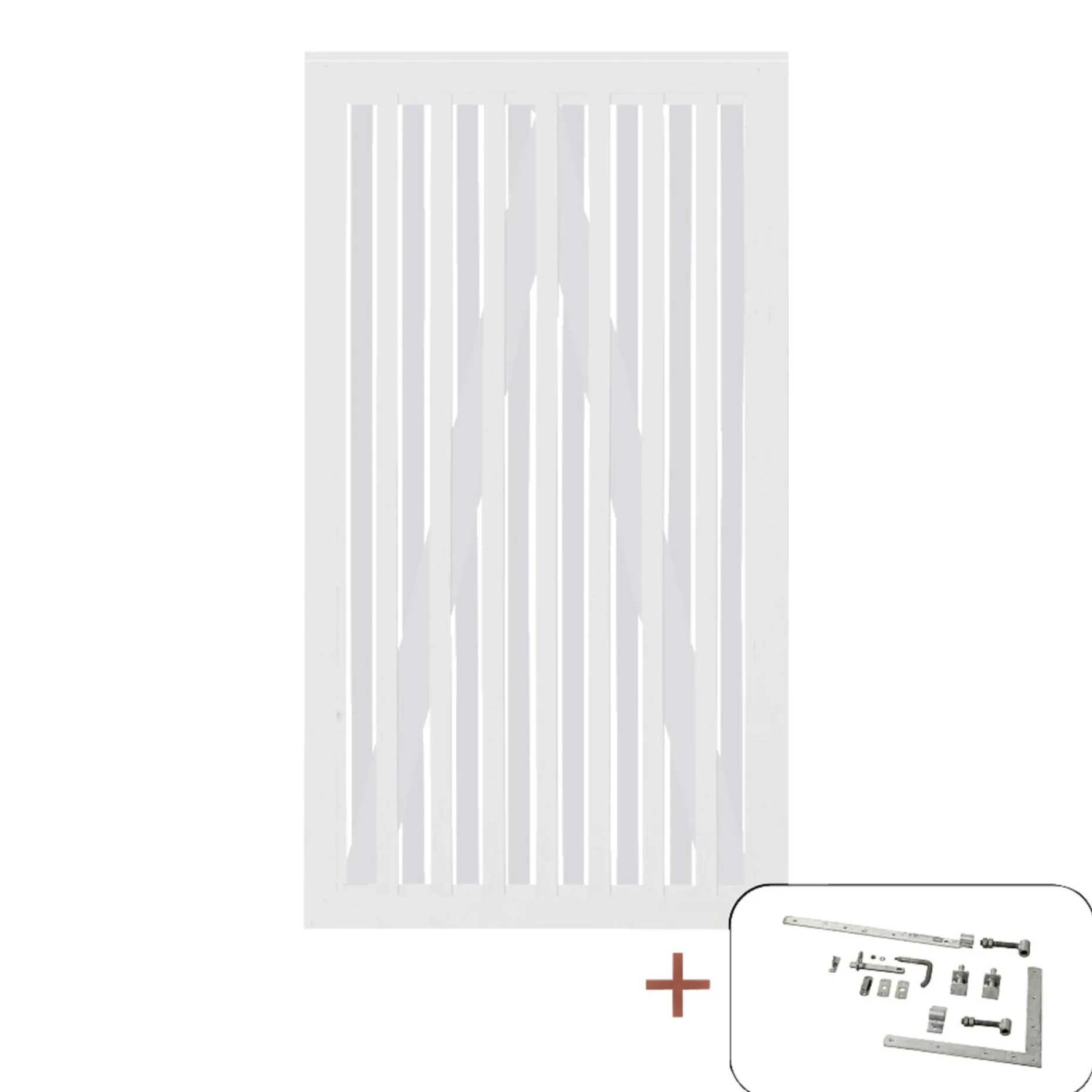 Nagano enkeltlåge inkl. beslag – 100×180 cm. Nagano er en japansk inspireret hegnsserie bygget op af smalle, lodrette lister, som skaber en flot 3D-effekt og struktur i hegnets overflade.