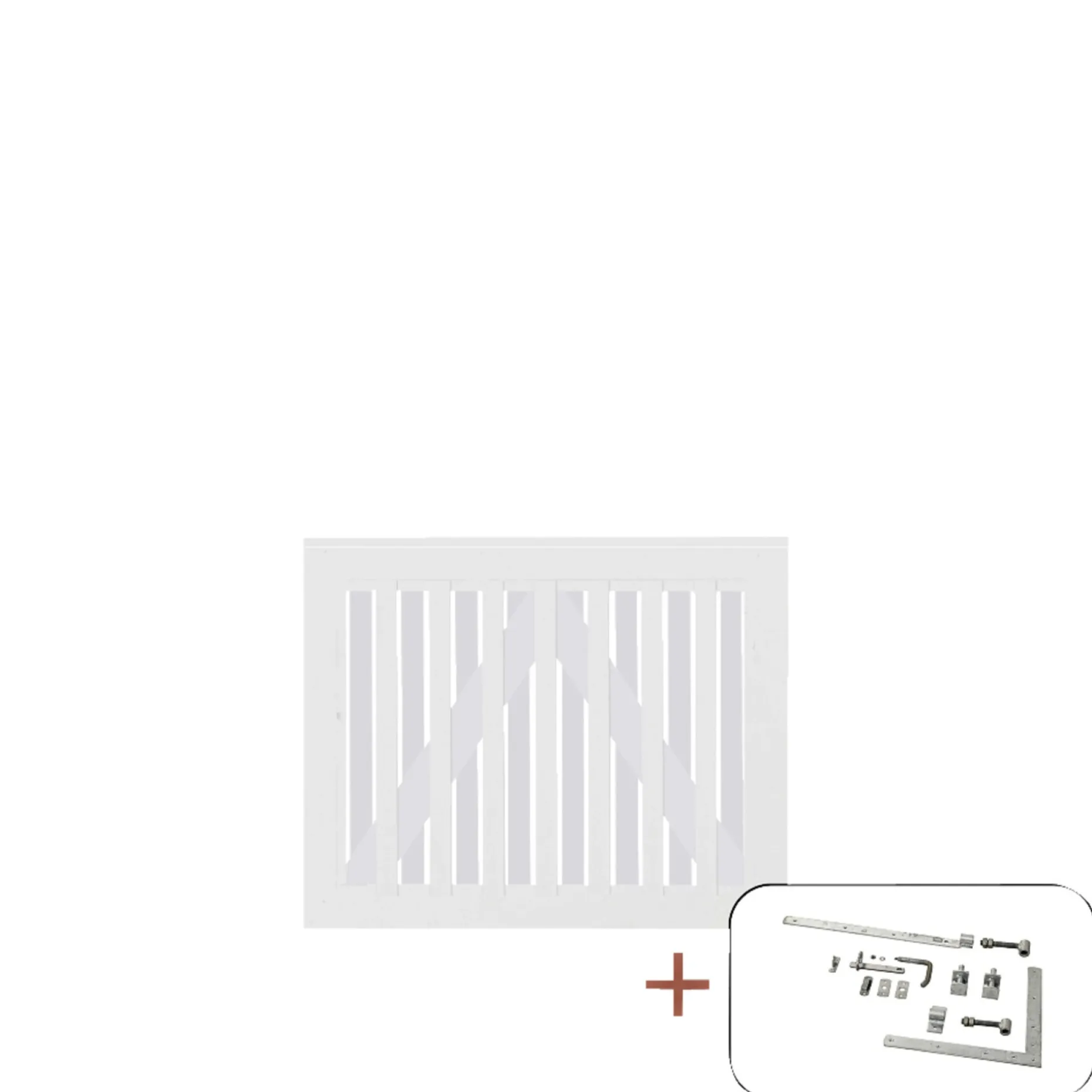 Nagano enkeltlåge inkl. beslag – 100×80 cm. Nagano er vores japansk inspirerede hegnsserie bygget op af smalle, lodrette lister, som skaber en flot 3D-effekt og struktur i hegnets overflade.De forskudte lister gør hegnet mere tæt end fx vores Sendai-serie, så du kan få privatliv, men stadig ane omgivelserne på den anden side af hegnet.Lågen er fungicidbehandlet og grundmalet 2 gange i hvid, hvilket giver en ensartet finish og gør den klar til videre behandling eller direkte montering.Den smalle listestruktur giver et levende skygge- og lysspil, som fremhæver 3D-effekten.Fungicidbehandlingen hjælper med at beskytte træet mod svampeangreb, og den dobbelte grundmaling sikrer en jævn, dækkende hvid overflade.Designet gør enkeltlågen velegnet til områder, hvor struktur og tæthed er vigtige elementer. Montering er enkel med de medfølgende beslag, og lågens opbygning sikrer stabil fastgørelse i stolper og rammer.