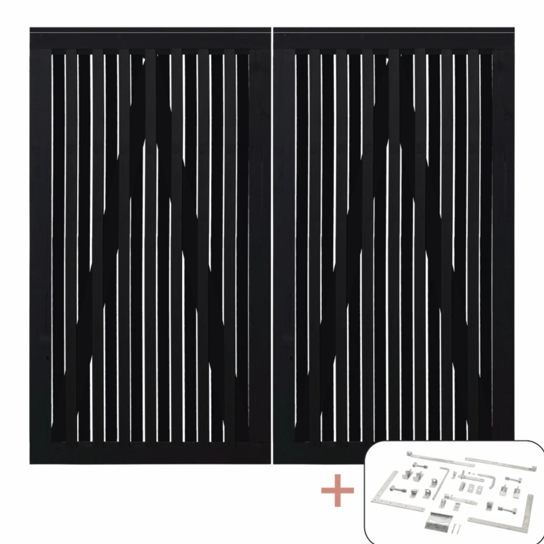 Nagano dobbeltlåge inkl. beslag – 200×180 cm. Nagano er en japanskinspireret hegnsserie og låger, bygget op af smalle, lodrette lister, som skaber en flot 3D-effekt og struktur i hegnets overflade.