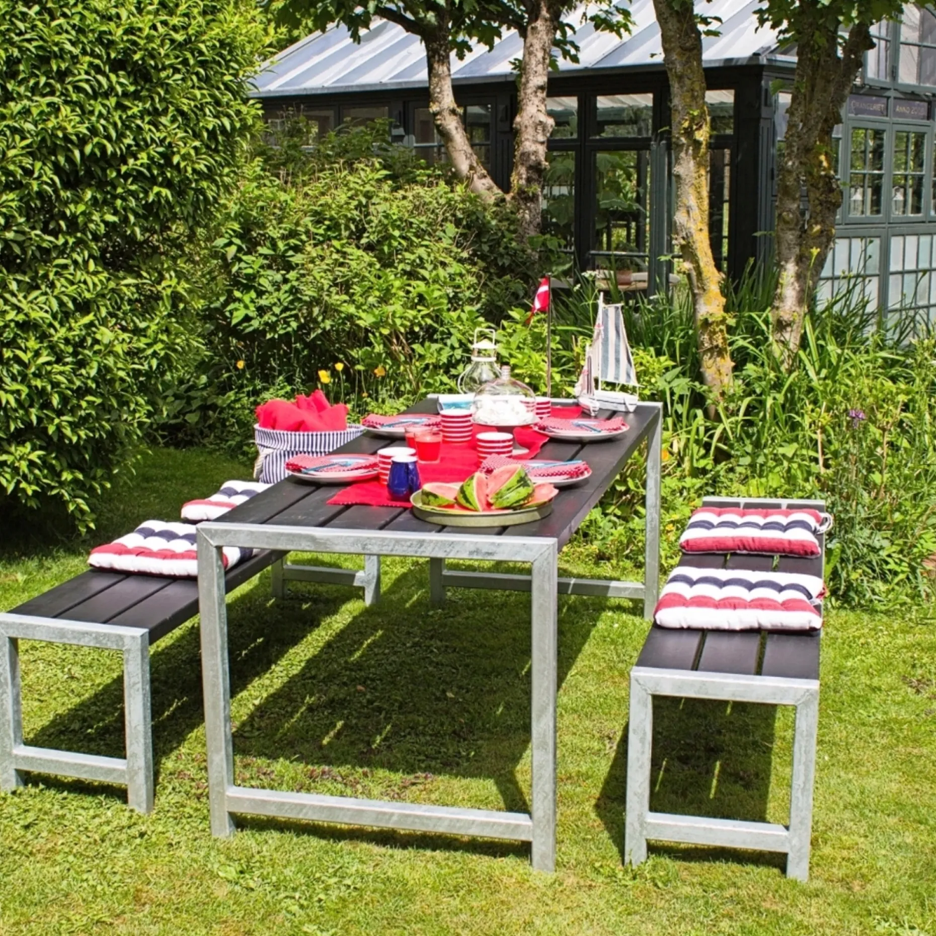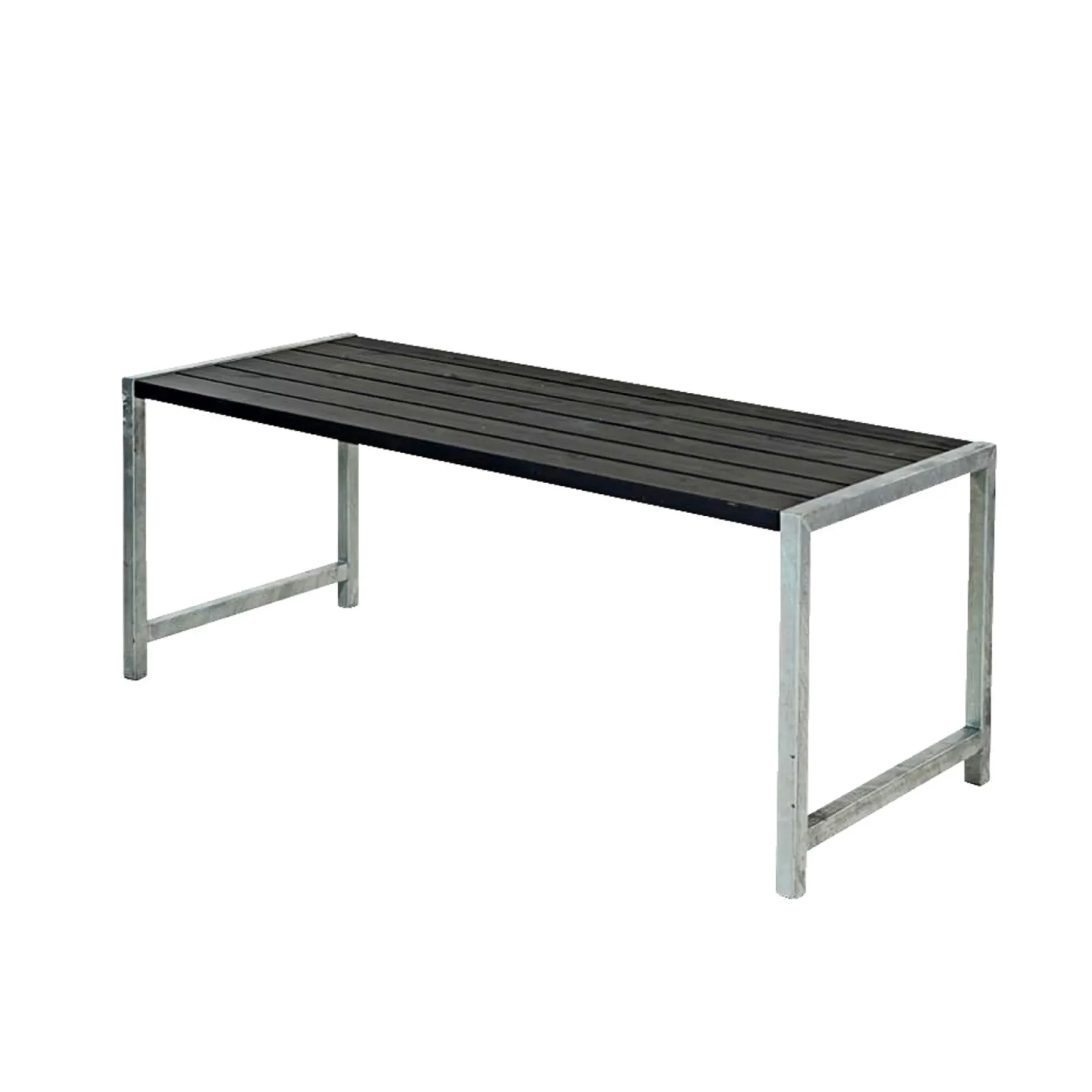 PLUS PLANKEBORD SORTPlankebord – 186 cm – SortPlanker:42×116 mm nåletræ.Fungicidbehandlet og grundmalet sort.Nærmeste RAL 9005 – vandbaseret. Varenr. 19816-15.Bord:Længde 186 cm – bredde 77 cm – højde 73 cm.Stel/ben: 45×45 mm varmgalvaniseret stål.Justérbare stillesko (0-15 mm).Leveres som “Saml selv”. Fungicidbehandlet og grundmalet