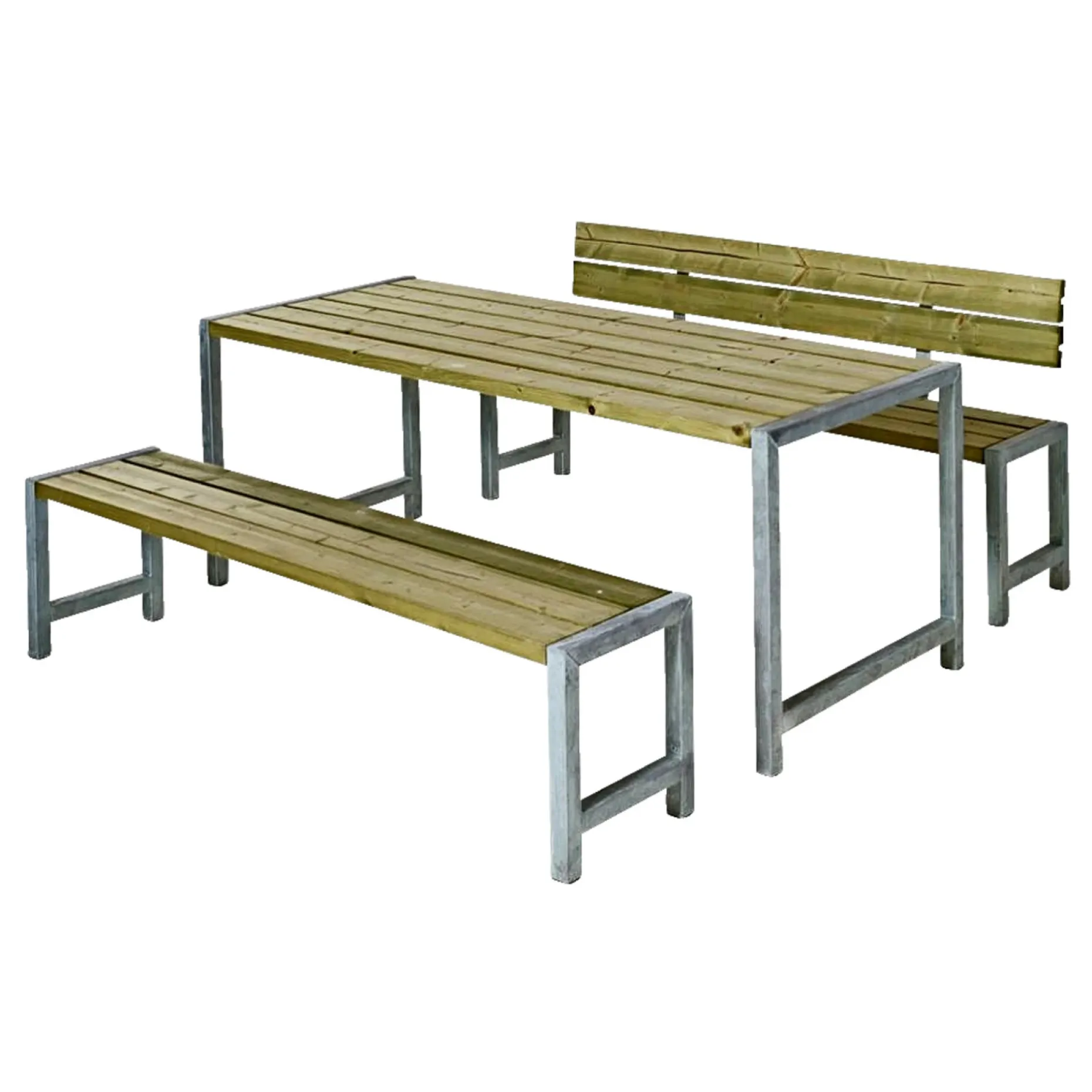 PLUS PLANKESÆT NATUR1 x Bord 77x186x72 cm1 x Bænke 38x176x44 cm1 x Bænk med ryglæn 38x176x81 cm”saml-selv”