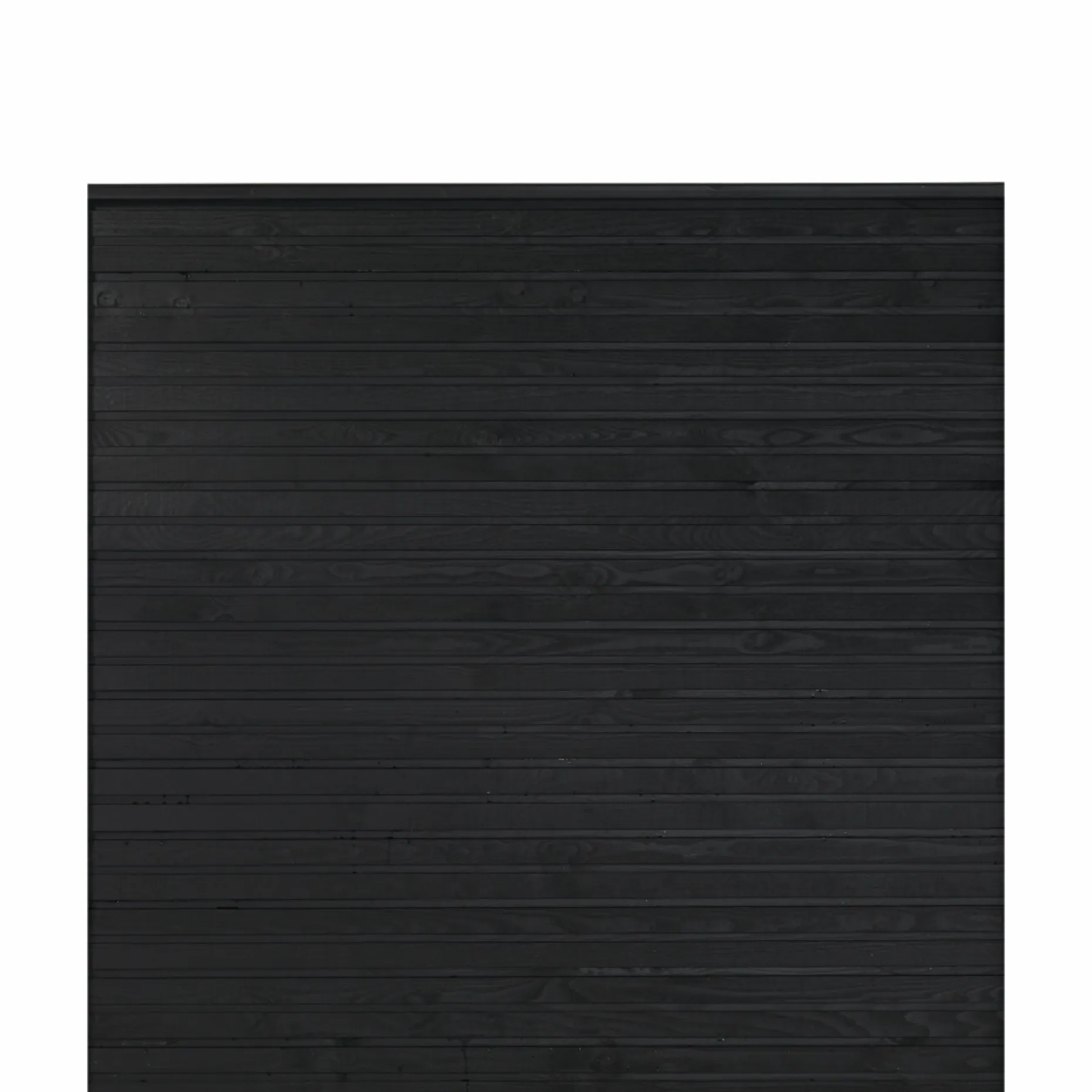 Det massive plankedesign sikrer tæt afskærmning og et visuelt kontinuerligt forløb, som skaber et sammenhængende indtryk langs hækken eller terrassen. Den sorte, grundmalede overflade giver en ensartet finish ved leveringen.