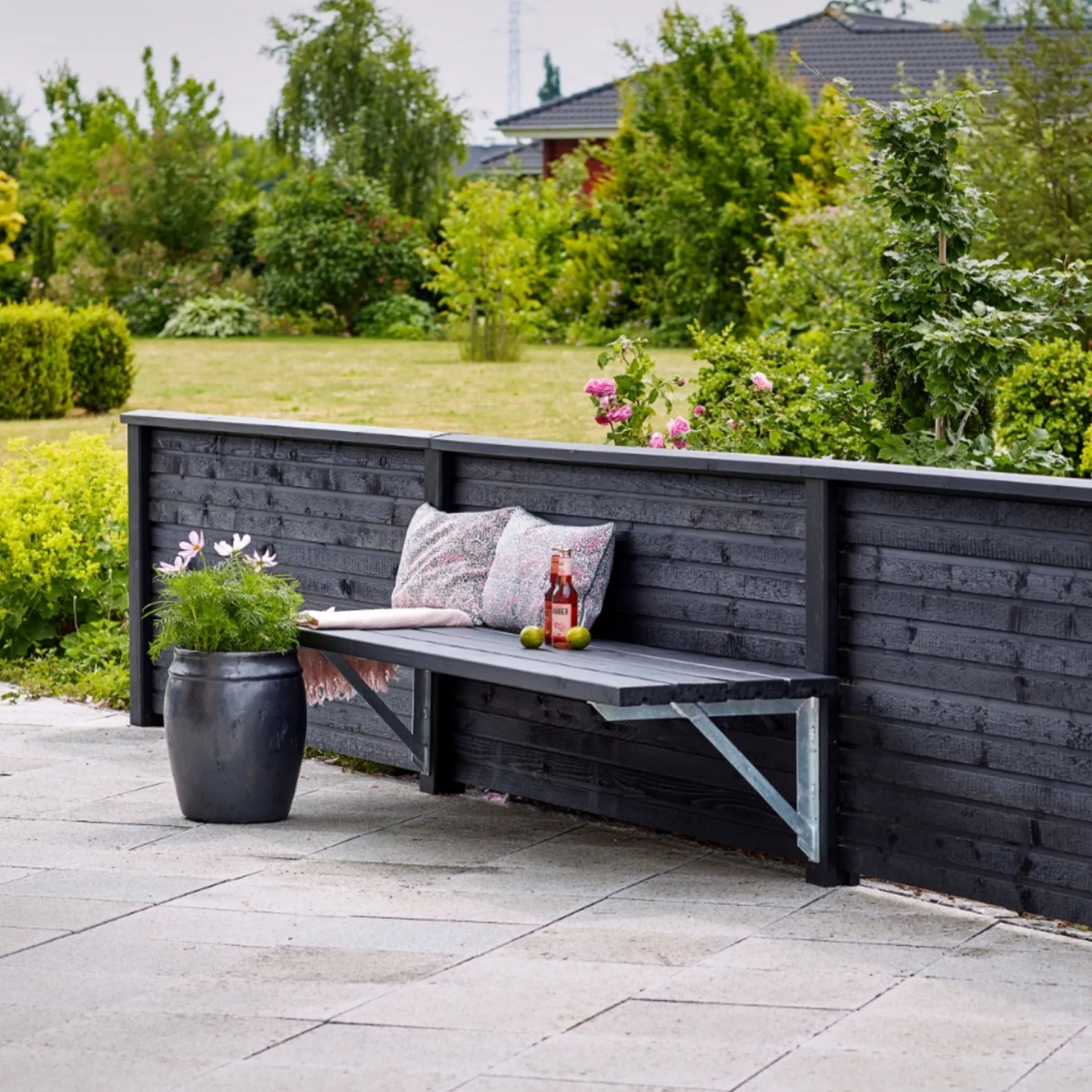Den trykimprægnerede og grundmalede overflade i sort giver et ensartet udtryk, der fungerer godt i både traditionelle og mere rustikke haver.