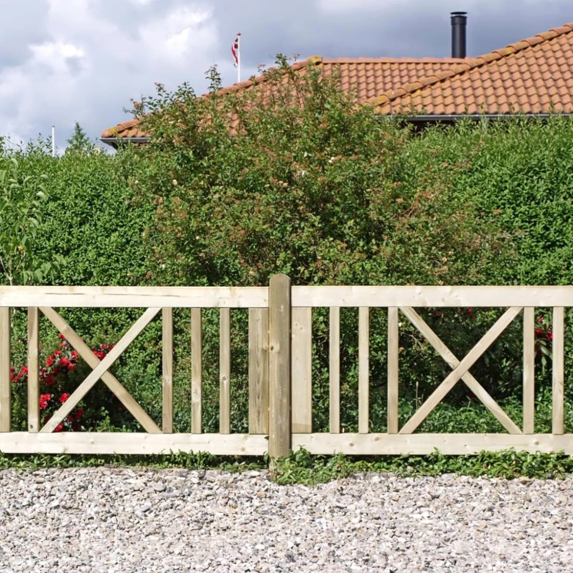 Hegnet er produceret i trykimprægneret nåletræ i en kraftig kvalitet, hvilket giver stabilitet og holdbarhed i udendørs brug. Overfladen er natur og kan efterbehandles i en ønsket farve, så du vælger udtryk efter din smag.
