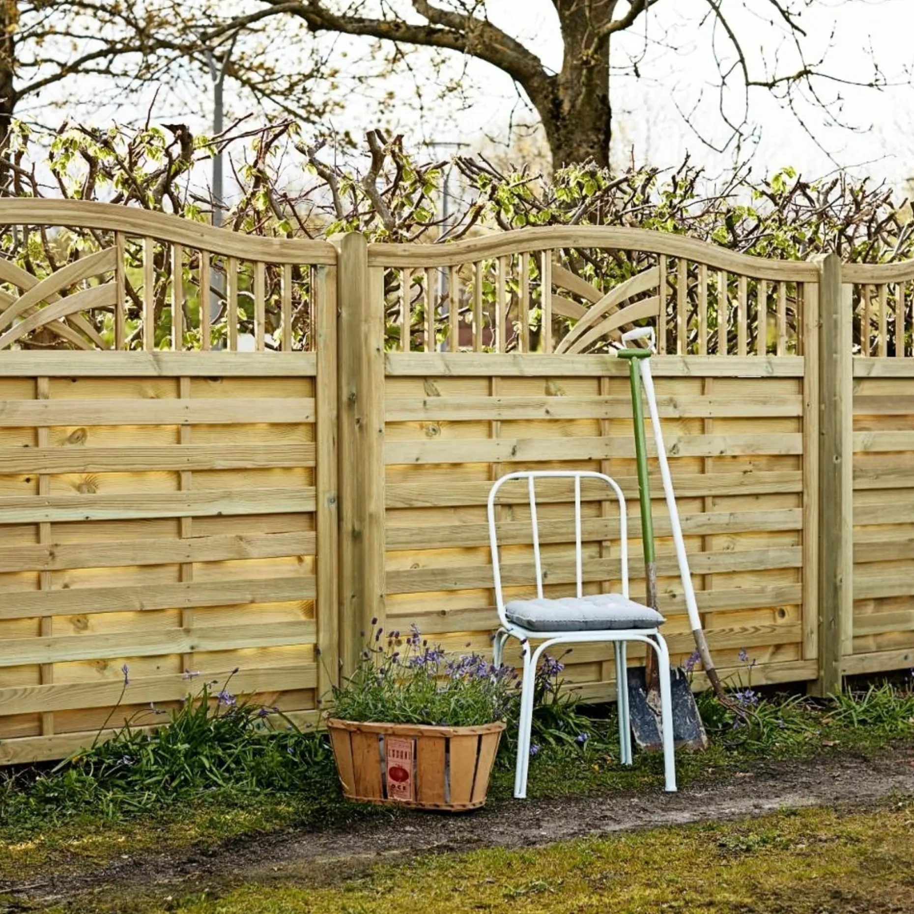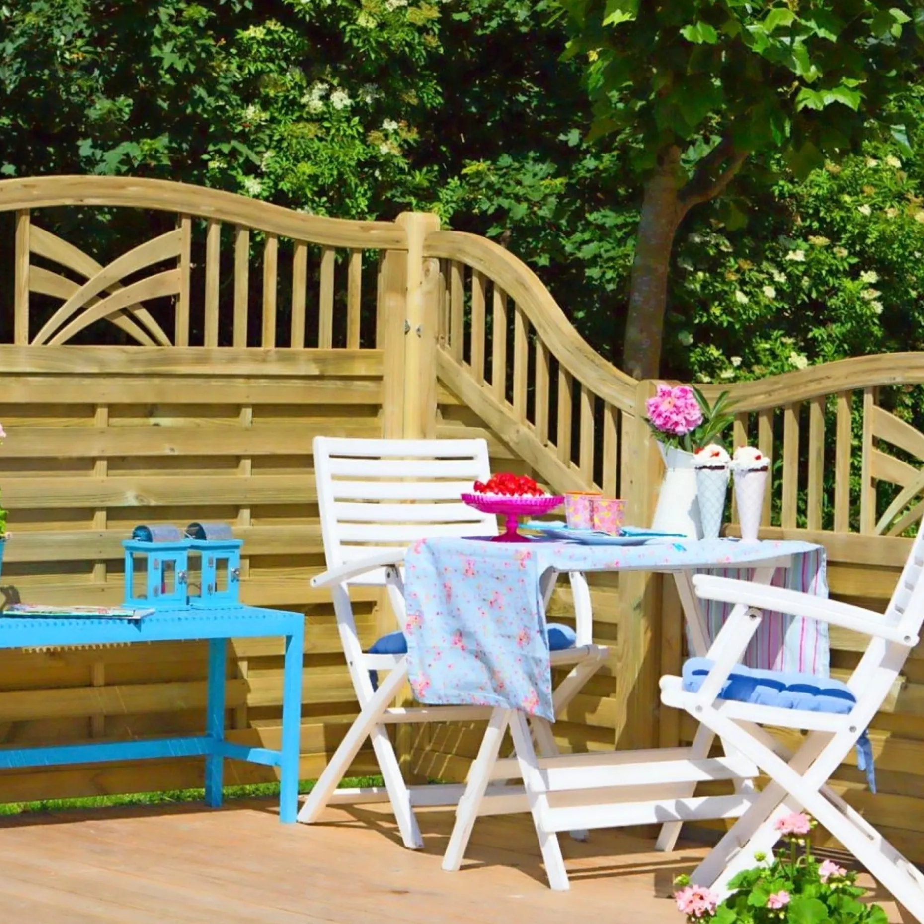 PLUS Rondo træhegn er et enkelt og flot terrassehegn med espaliergitter, udført i trykimprægneret fyr/gran. Hegnet skaber afskærmning og et dekorativt element til terrasse og have.
