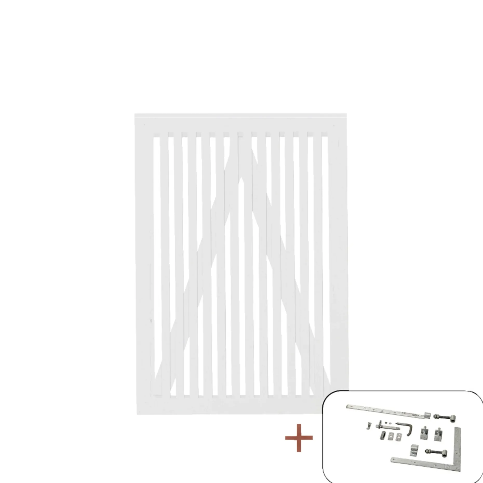 De smalle lister sikrer en diskret afgrænsning uden at blokere for dagslyset, så både planter og belægning bag lågen får lys. Inkluderede beslag forenkler monteringsprocessen og gør det lettere at få lågen til at fungere stabilt i din eksisterende hegnestruktur nemt.