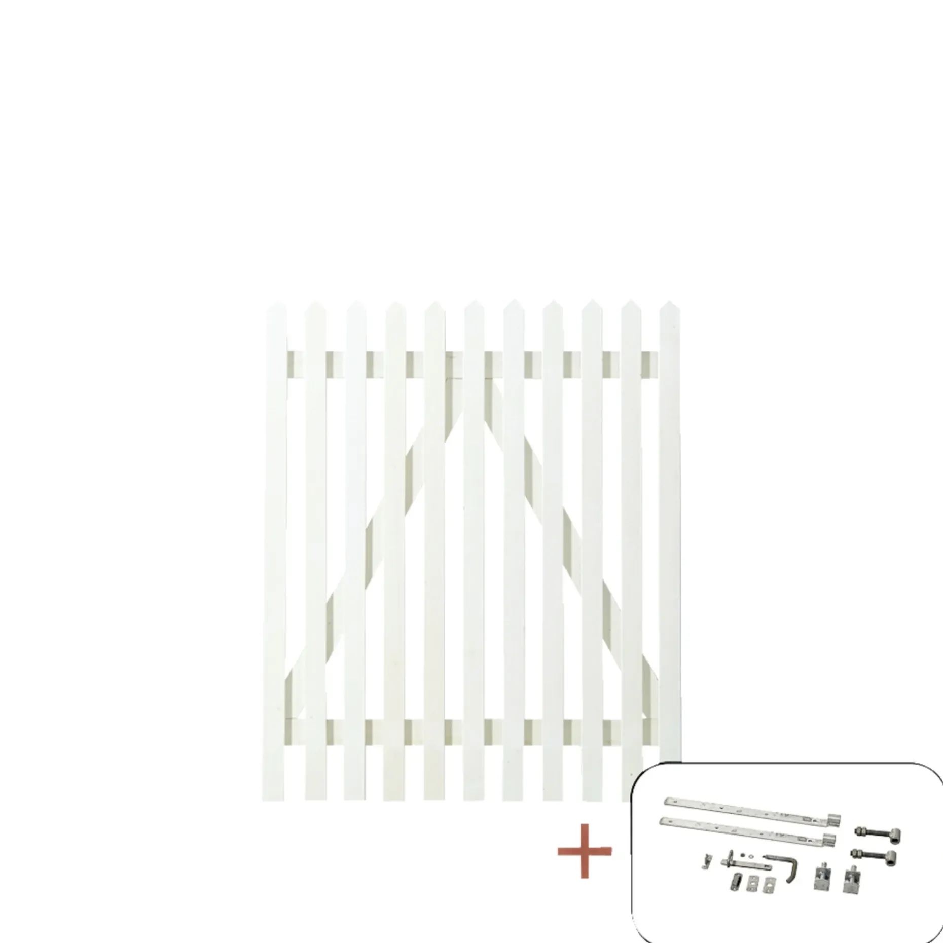 Lågen fungerer både som afgrænsning og indbydende indgang og kan kombineres med matchende stakit for sammenhængende udtryk. Den kan placeres ved indkørsel, sti eller terrasseafgrænsning alt efter behov.