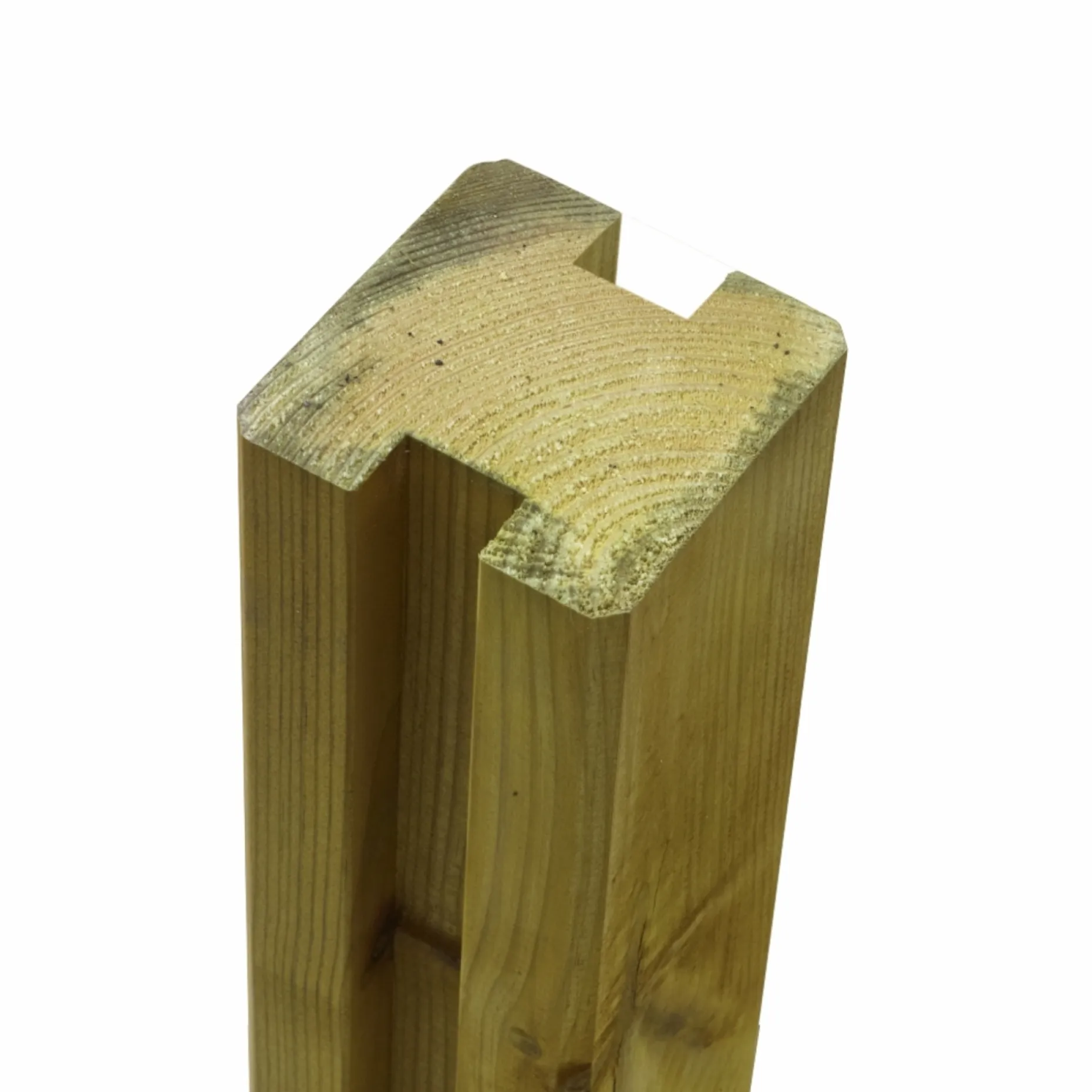 Krydsskåret profilstolpe med 2 spor i målene 9 x 9 x 268 cm.