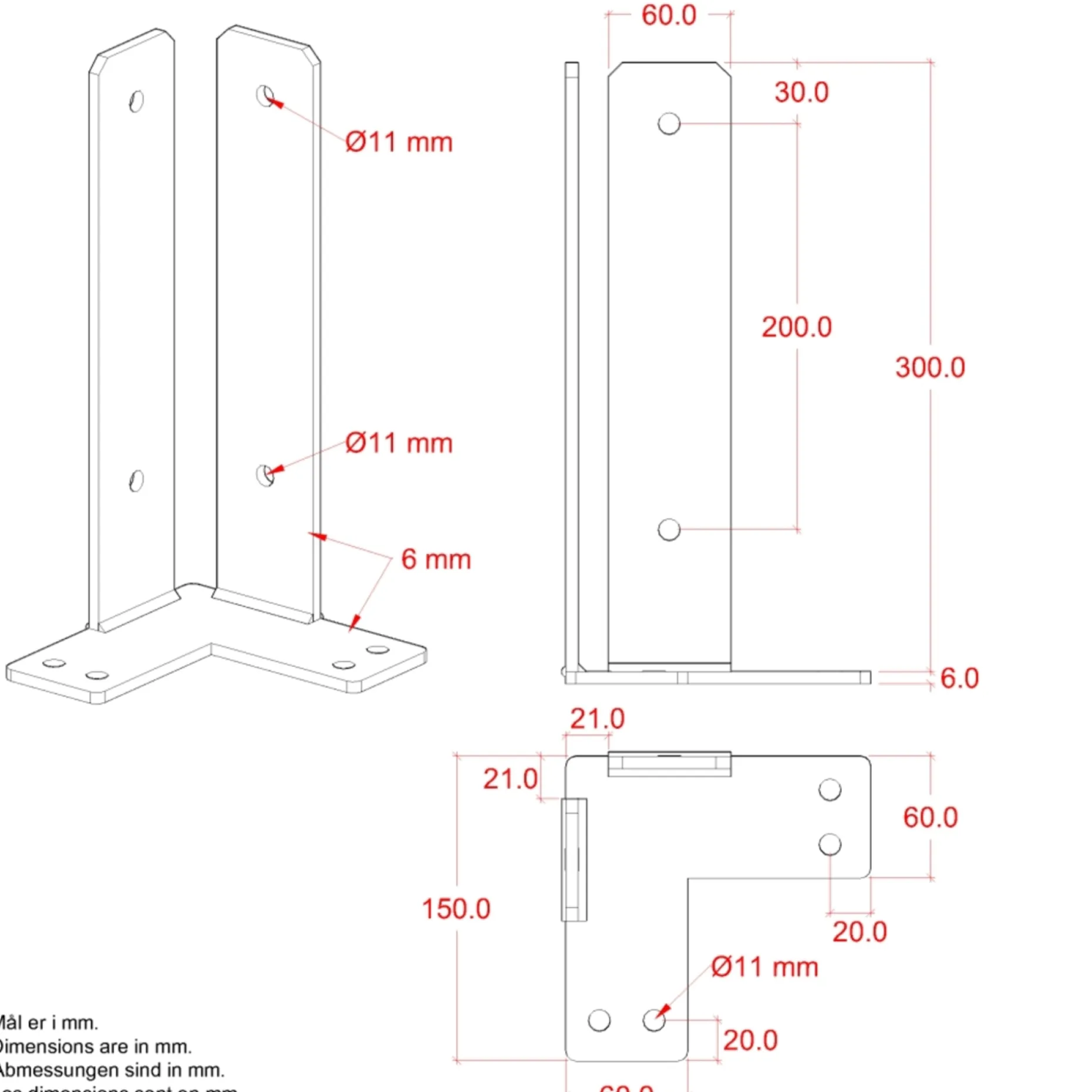 PLUS Hjørne Stolpefod m/skruer er en styrkeberegnet løsning til forankring af stolper på fundament.