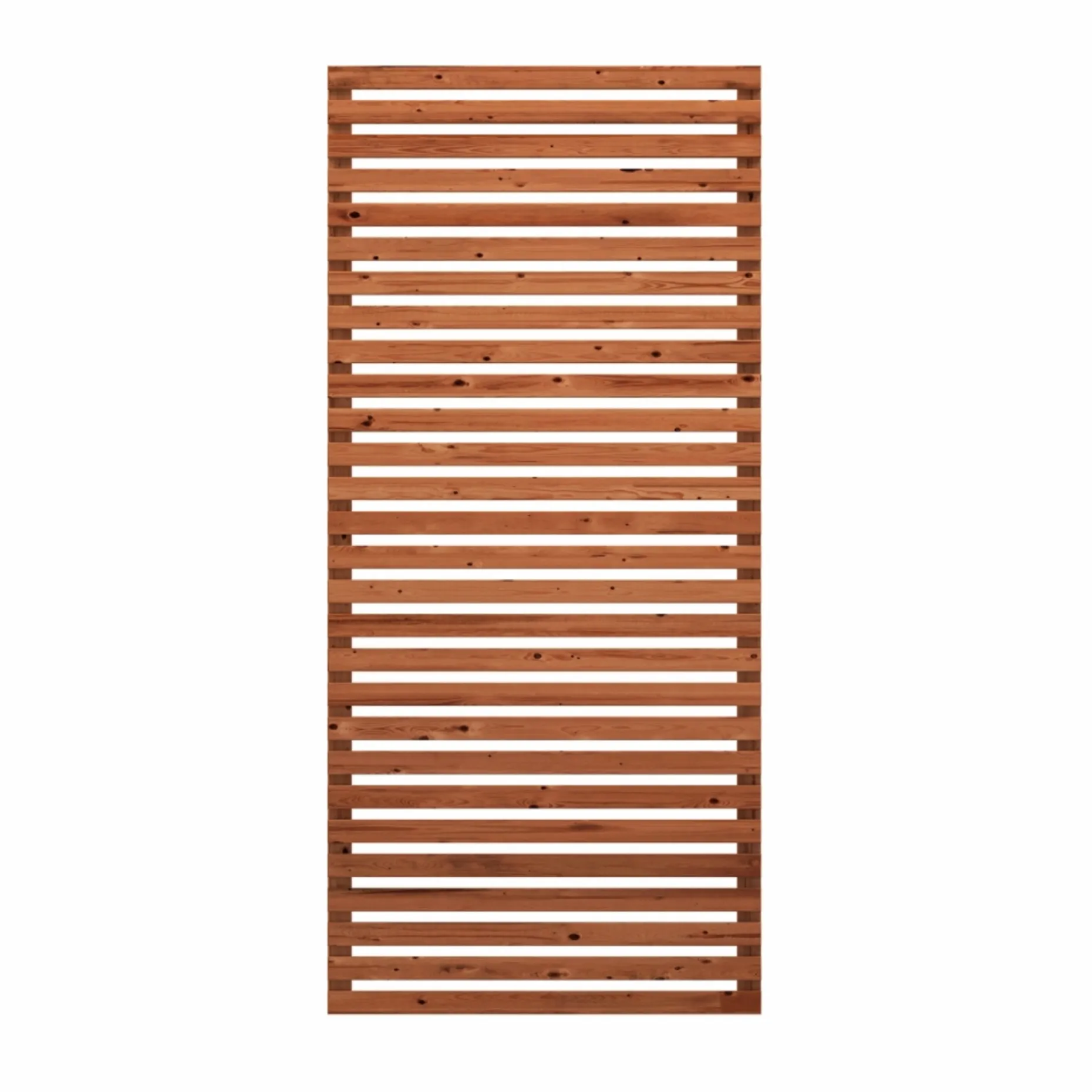 PLUS Tokyo Hegn i ThermoWood® er et gyldenbrunt hegn med smalle lister på langs, inspireret af den japanske æstetik, hvor ro og stringens er i fokus. Det skaber en afdæmpet og stilren baggrund til terrassen eller haven og fungerer velegnet som rumdeler, hvor du ønsker et afgrænset og roligt uderum. De smalle lameller virker kamouflerende, så du kun aner omgivelserne, samtidig med at lyset slippes ind og danner smukke skygger. Hegnet giver mulighed for at lade planter klatre, bruge lamellerne til kroge eller plantekasser, eller lade elementet stå for sig selv som dekorativ afskærmning. Elementets finish og lamellernes opbygning skaber et varmt, gyldenbrunt udtryk, der bidrager til et indbydende uderum uden at lukke det helt af.