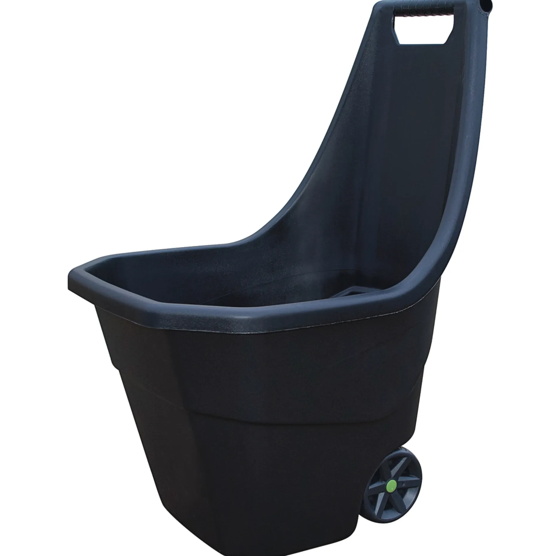 Let og stabil havevogn med 2 hjul. Sort plast, 55 liter.