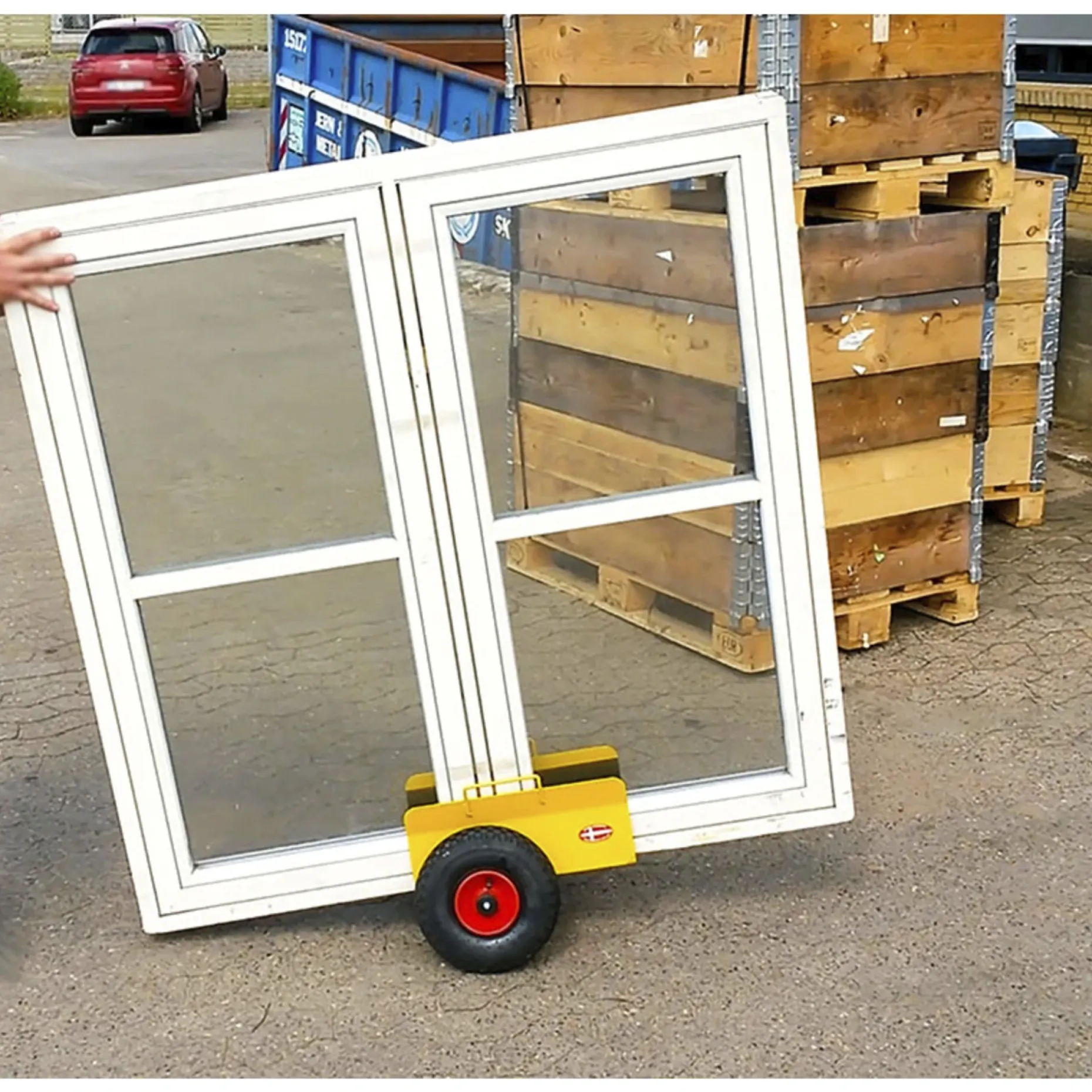 Produktet er velegnet til transport og midlertidig understøtning af plader og profiler, og det gør det nemmere for én person at håndtere tungere emner sikkert.