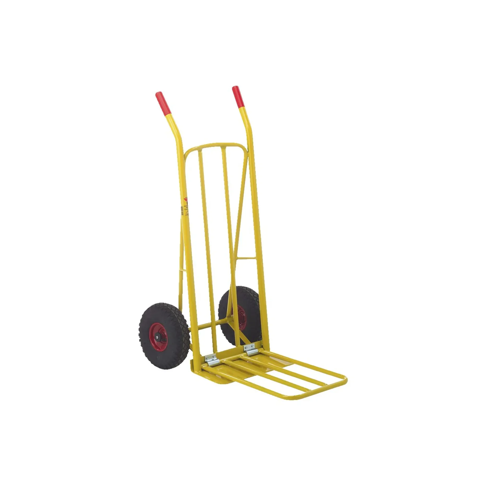 Gul sækkevogn til sikker og effektiv transport af sække og tunge emner på byggepladsen eller i haven. Kapacitet 250 kg gør den velegnet til gentagne løft og større gør-det-selv-projekter. Udfaldsrammen gør det nemmere at få lasten på plads ved aflæsning.