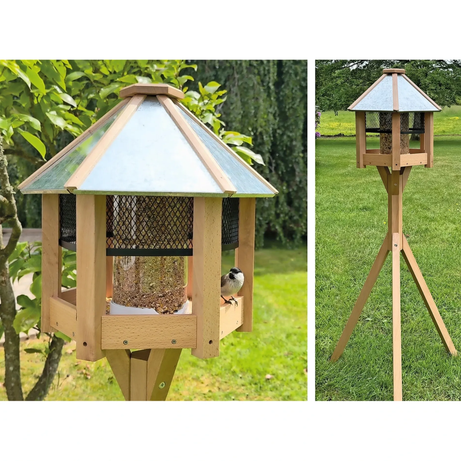 Huset er inkl. et øvre gitter som sikrer, at større fugle indtager spisepladsen.