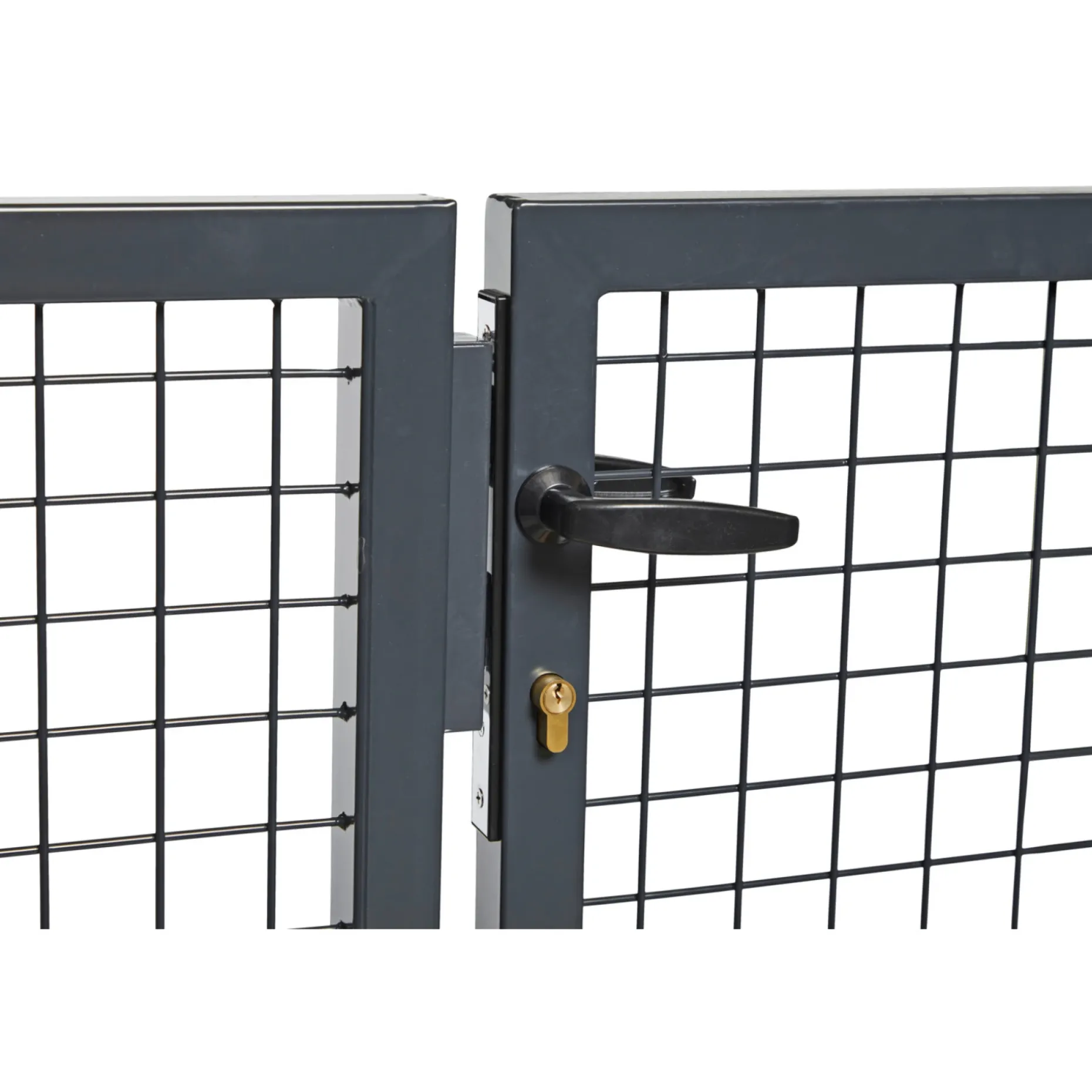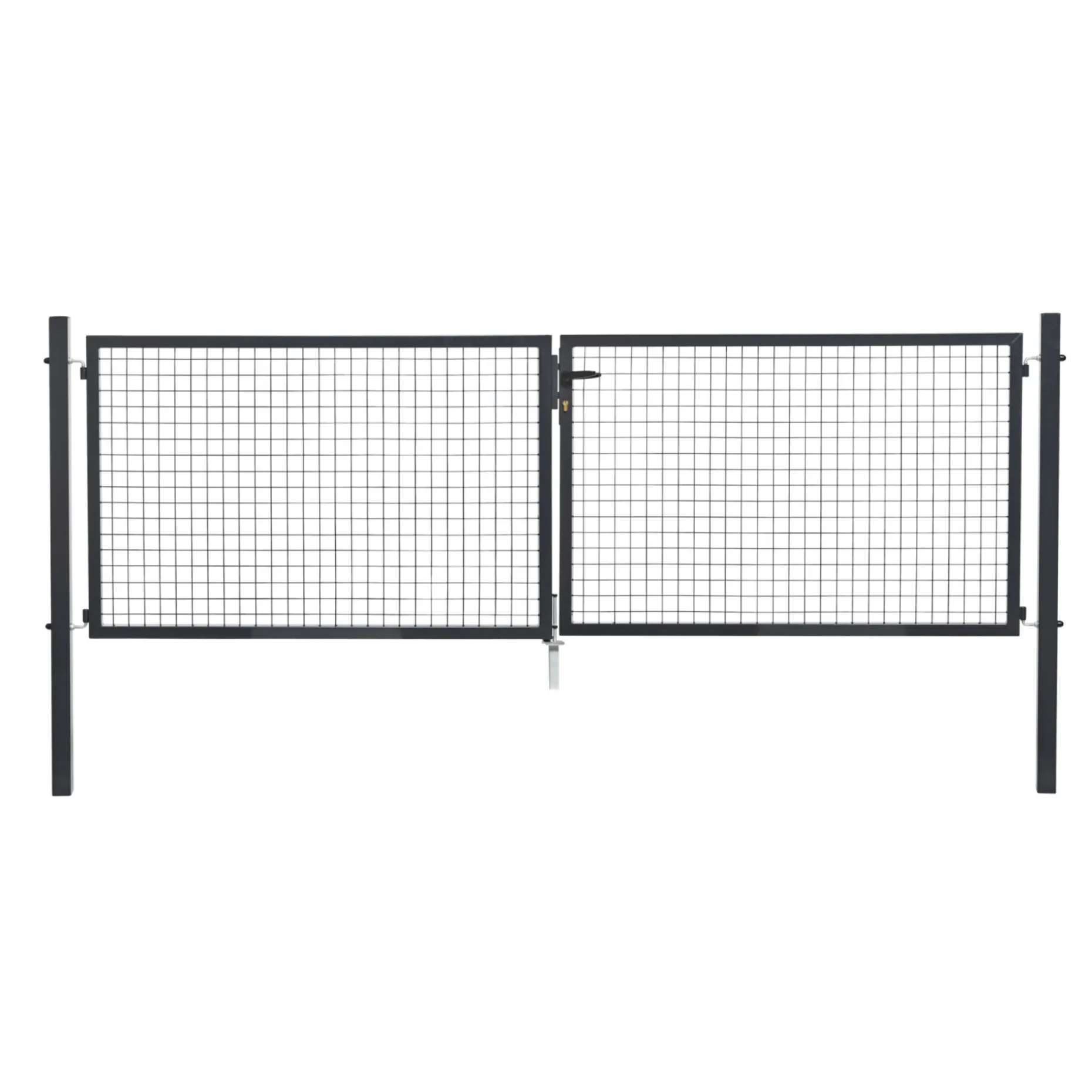 Låge, til DB 2366748, til panelhegn, komplet inklusive to H150 stolper, 2 x DB 2366749, håndtagssæt, lås og 3 nøgler. Varmgalvaniseret og pulverlakeret. Stolper er designet til at skulle støbes i jorden