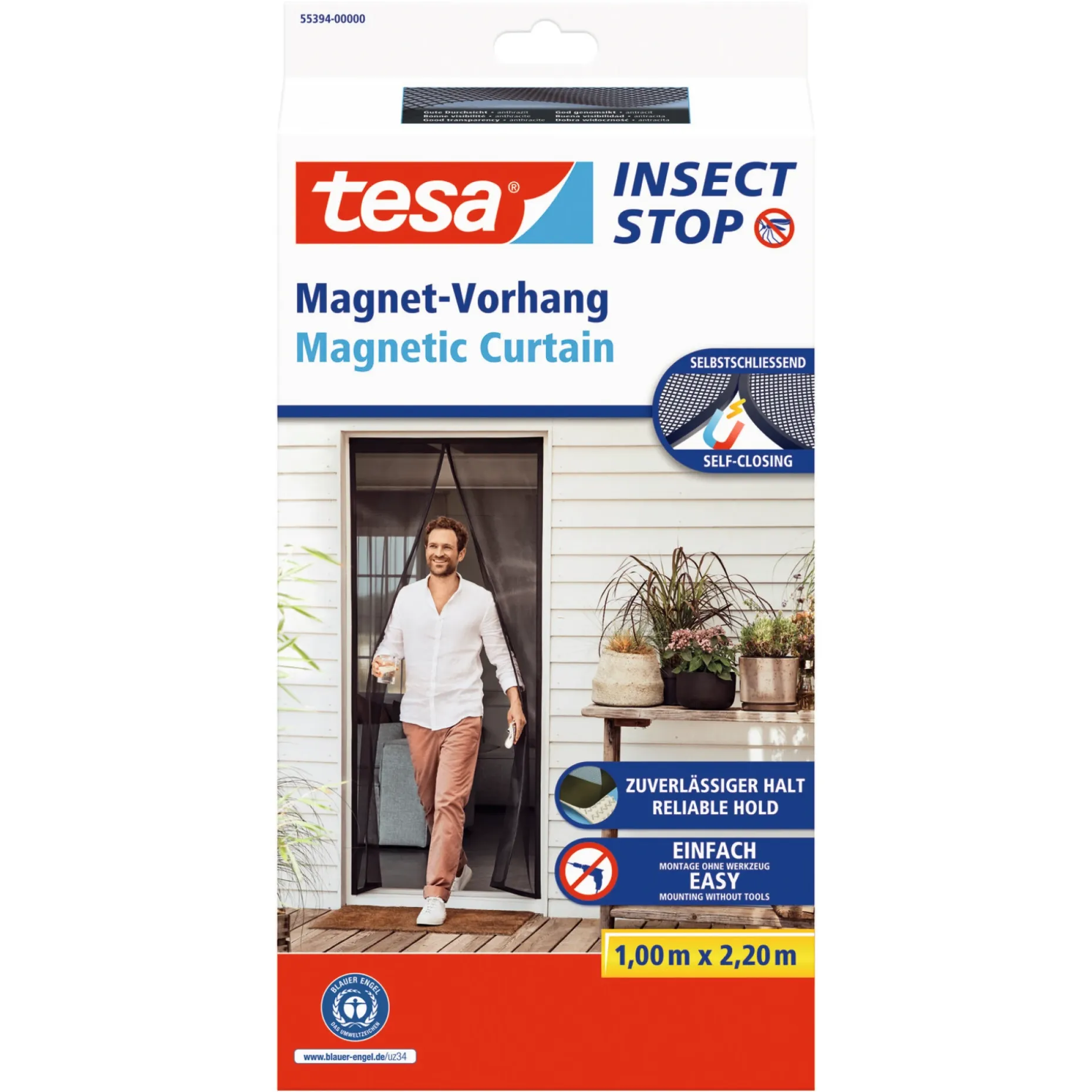 Det er nu blevet meget nemmere at holde insekter ude! tesa har udviklet dette selvlukkende magnetiske gardin, der sørger for at terrasse- eller altandøren ikke bliver en indgang for myg. De 30 magneter, der er syet ind i gardinet, giver store fordele: Dørgardinet kan åbnes og lukkes uden besvær. Den magnetiske funktion er især nyttig, når der er børn i husstanden, eller hvis du har et kæledyr. Den brede selvklæbende tape kan klippes til i den ønskede størrelse og gør det muligt for selv uerfarne brugere at montere gardinet nemt og hurtigt uden at bore.