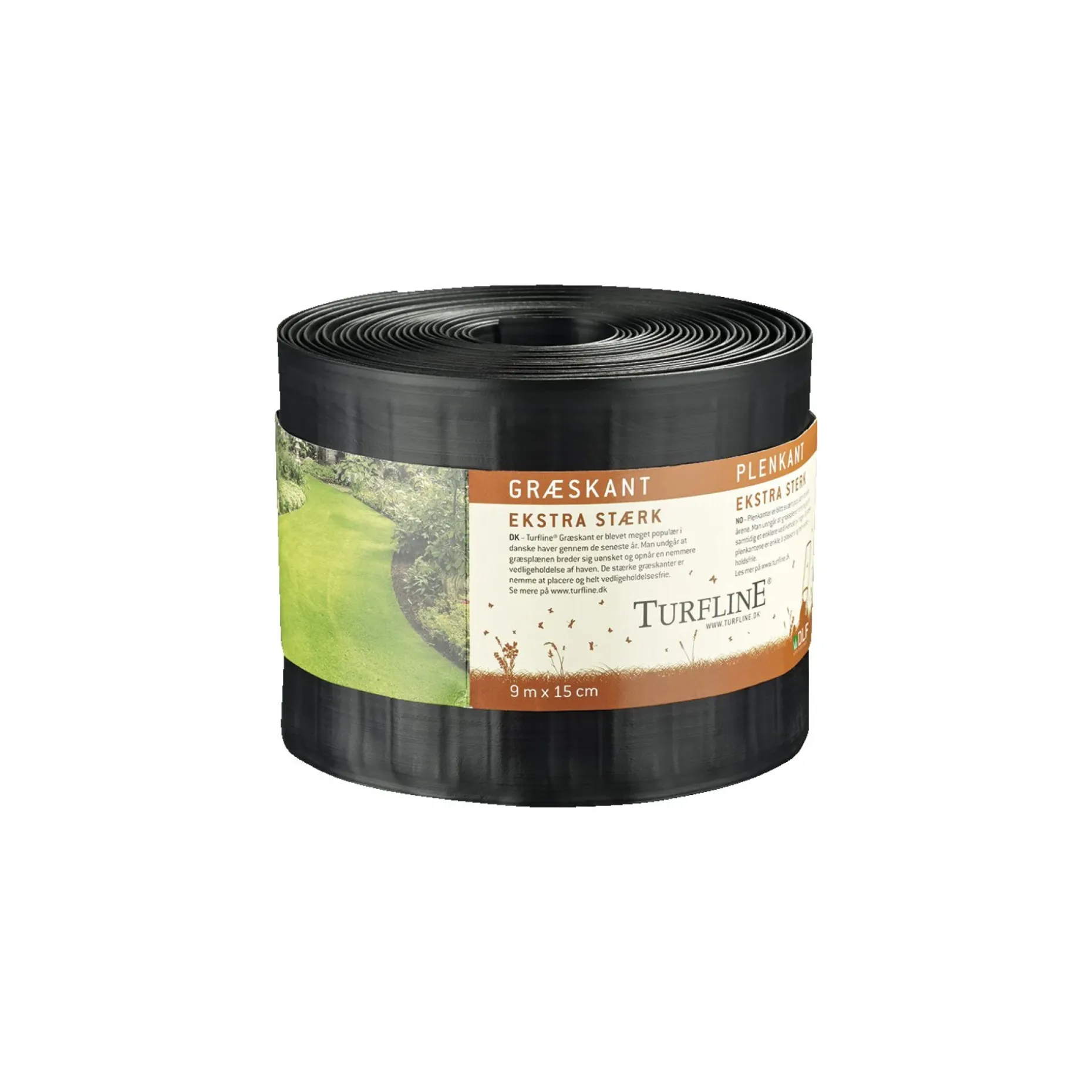 Turfline Græskant hjælper dig med at tæmme græsset, så det ikke breder sig unødvendigt. Græskanten er fremstillet i sort plastik, hvilket gør den diskret i haven og let at integrere i jordens farver. Den er ekstra stærk og giver en holdbar kant, som skaber et tydeligt og pænt skel mellem græsplæne og bede.