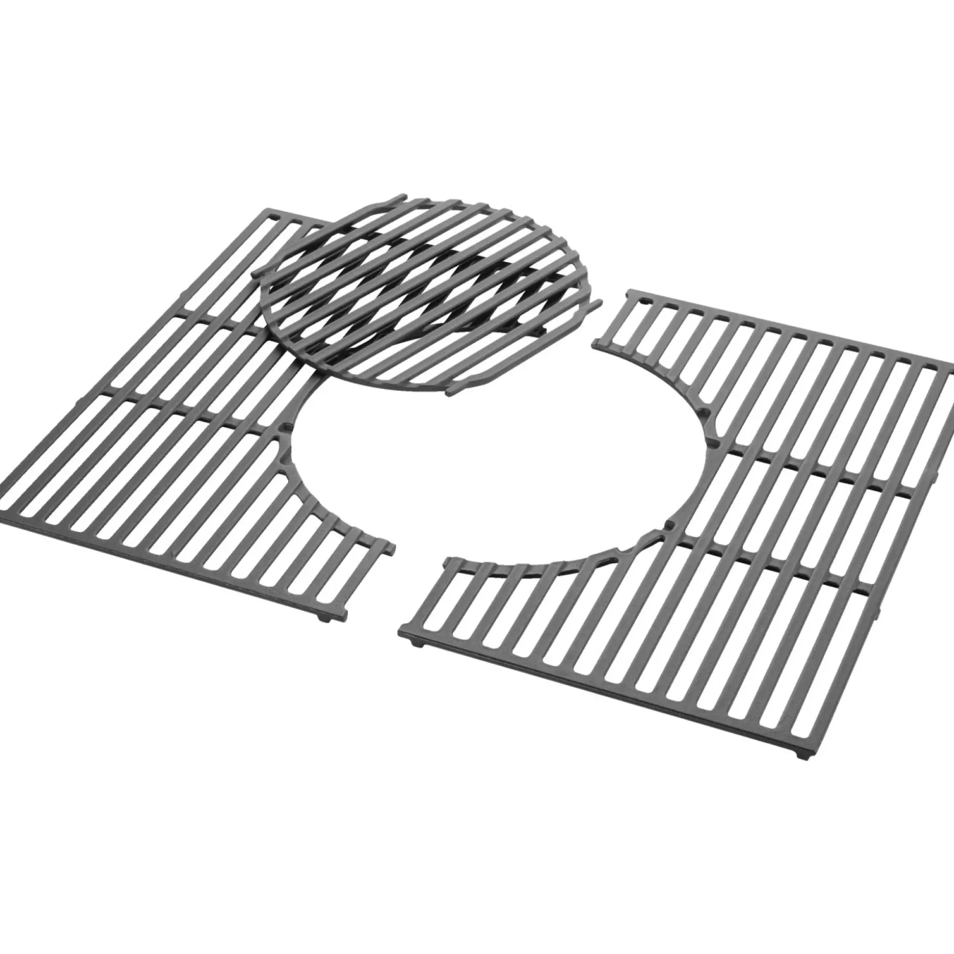 Porcelænsemaljeret, todelt støbejernsrist med udtagelig midtersektion, designet til at give robust og stabil varme til grillmad. Den todelte konstruktion gør det nemt at håndtere risten og rengøre den, mens den udtagelige midtersektion åbner for fleksibel brug af Gourmet BBQ System-indsatser og andre kompatible tilbehør. Ristens overflade kombinerer støbejernets varmeakkumulering med en porcelænsemalje, der beskytter materialet og giver en klassisk sort finish.