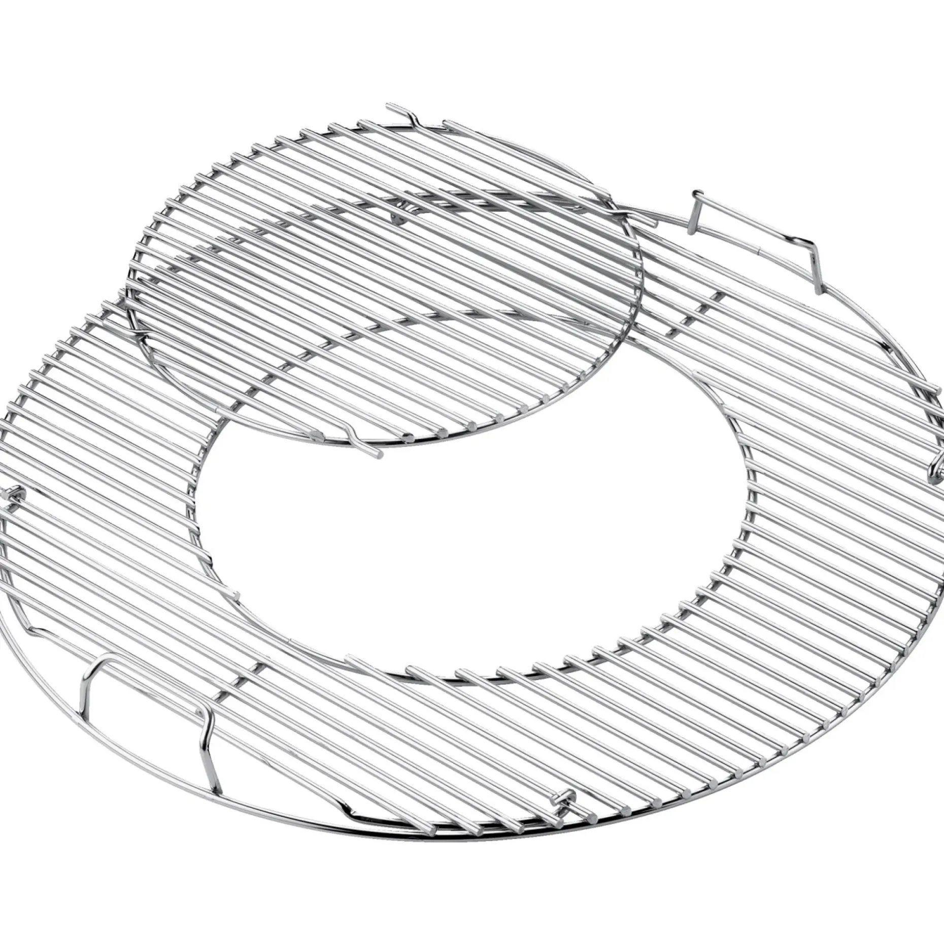Rustfri stålgrillrist med udtagelig midtersektion, der gør det muligt at kombinere traditionel grillning med GBS-indsatser som stegepande, støbejernsrist eller wok. Fjern midtersektionen og indsæt den ønskede GBS-del for større alsidighed ved tilberedning og direkte varme til grillet kød og grøntsager.