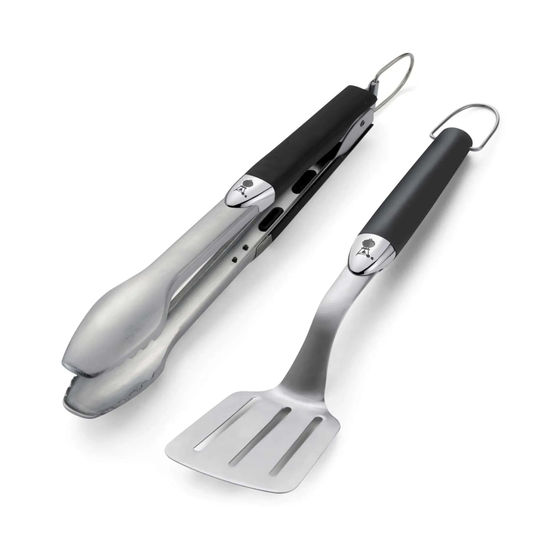 WEBER PREMIUM REDSKABSSÆT er et 2-delt, kompakt redskabssæt til transportable og mindre grill. Sættet består af en palet og en låsbar tang fremstillet i kraftigt, børstet rustfrit stål med sort softcoating greb. Materialet giver en tidløs finish og en robust fornemmelse, samtidig med at overfladen er nem at holde ren.