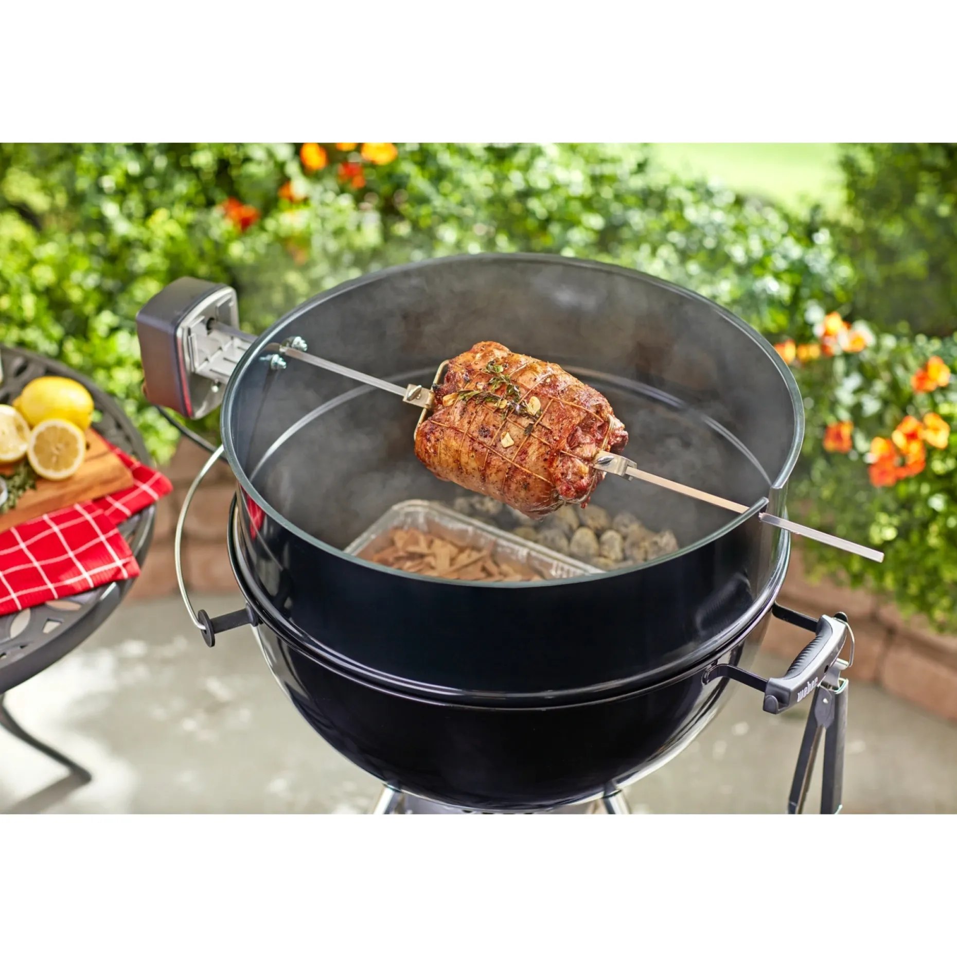 Rotisseriet er et af de mest elskede tilbehør blandt Weber-ejere og grill-entusiaster og passer til en Weber kuglegrill Ø 57 cm. Det er velegnet til hele fugle som kylling, store stege som lammekølle samt alternative tilbehør som grillet ananas.