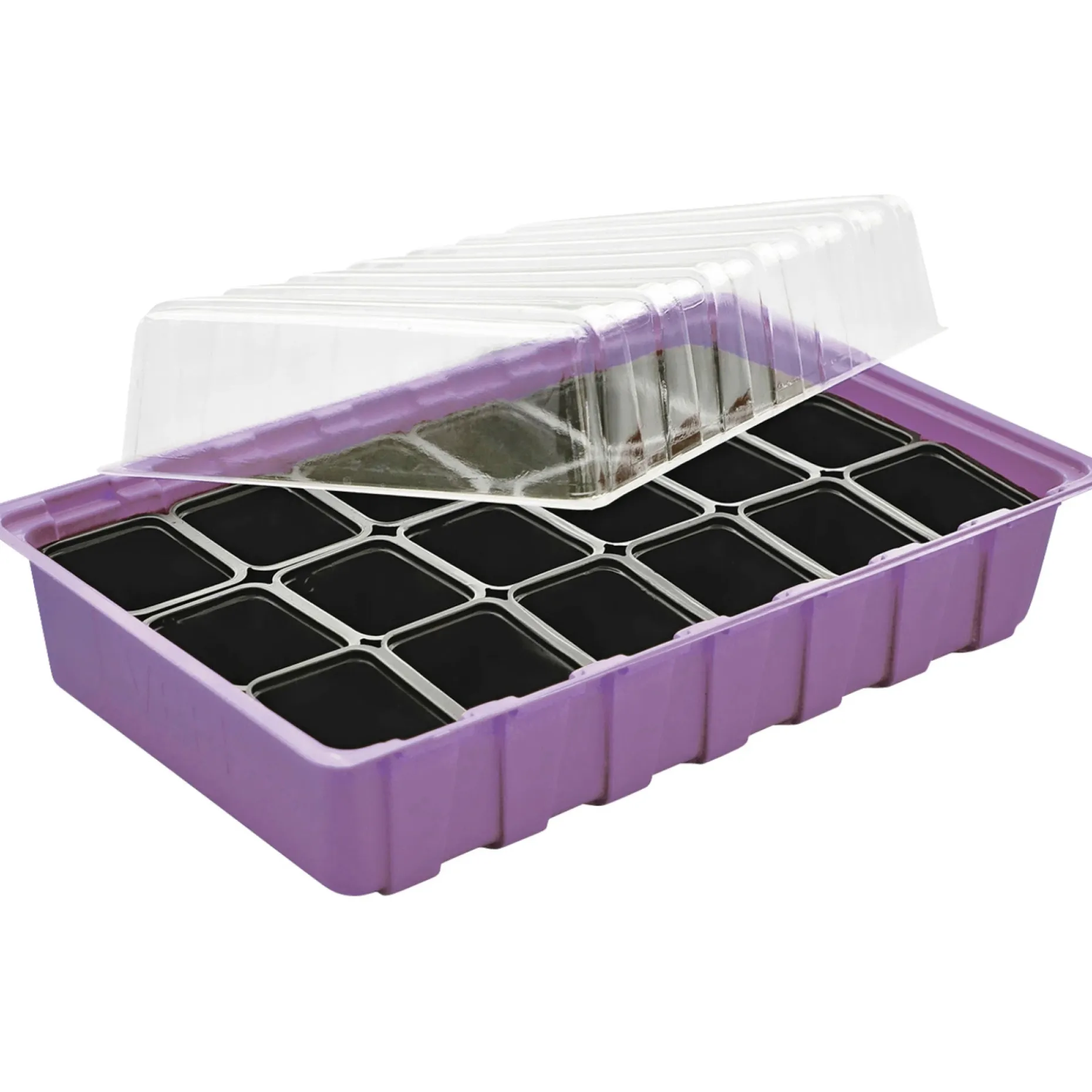 Det leveres klar til brug med 18 potter, så du kan starte såning med det samme uden at skulle købe ekstra beholdere. Potterne i syrenlilla giver samtidig et dekorativt præg i dit dyrkningsområde.