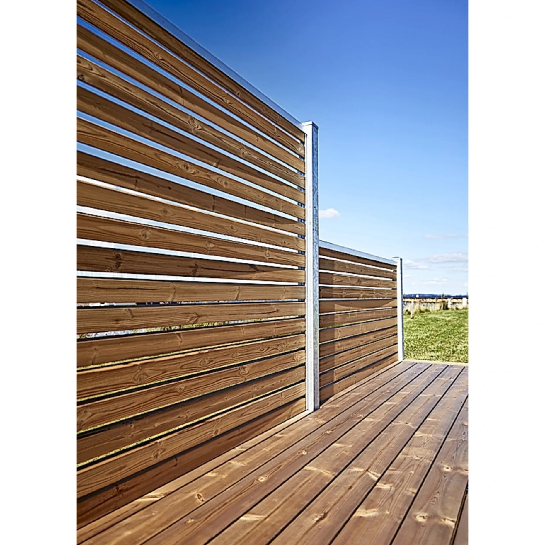 Varmbehandlingen kombinerer høj varme og damp for større holdbarhed og formstabilitet. Brædderne er særligt modstandsdygtige overfor råd, skimmel og svamp. Hegnet er let at montere og leveres med varmgalvaniserede stålstolper og montageskinner.